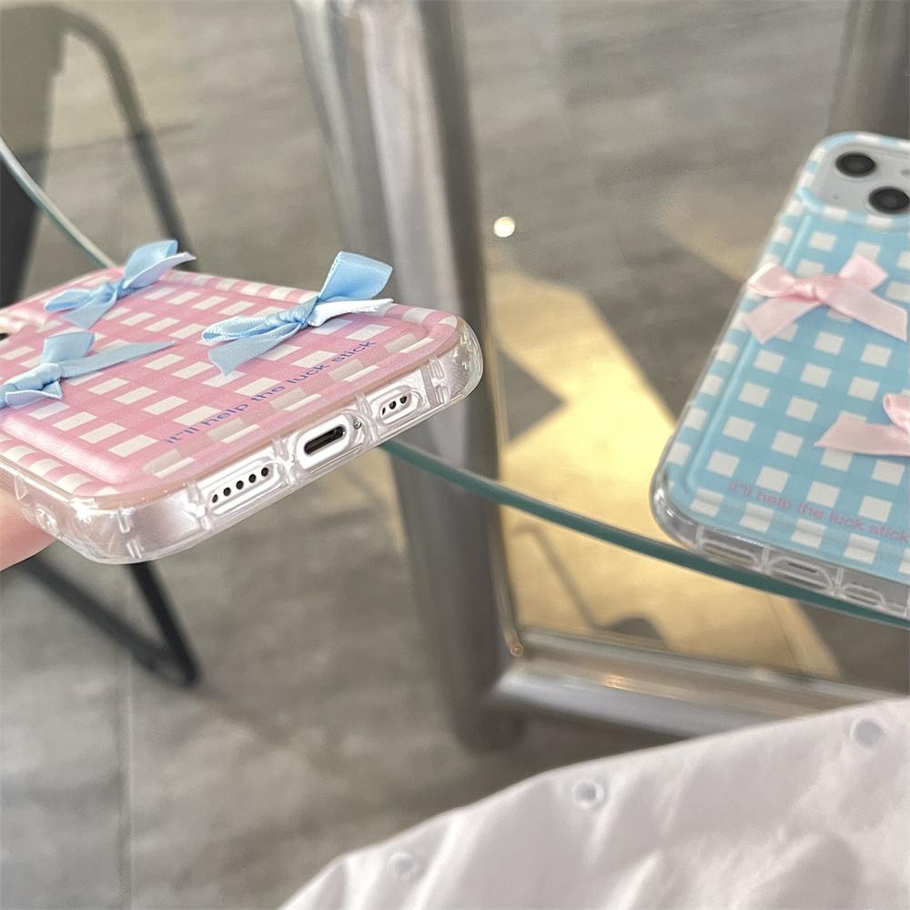 Ins корейский 3d розовый синий бант решетчатый мягкий чехол для телефона для Iphone 14 12 11 13 Pro Max 11 12 13 14 защитная задняя крышка для милой девушки