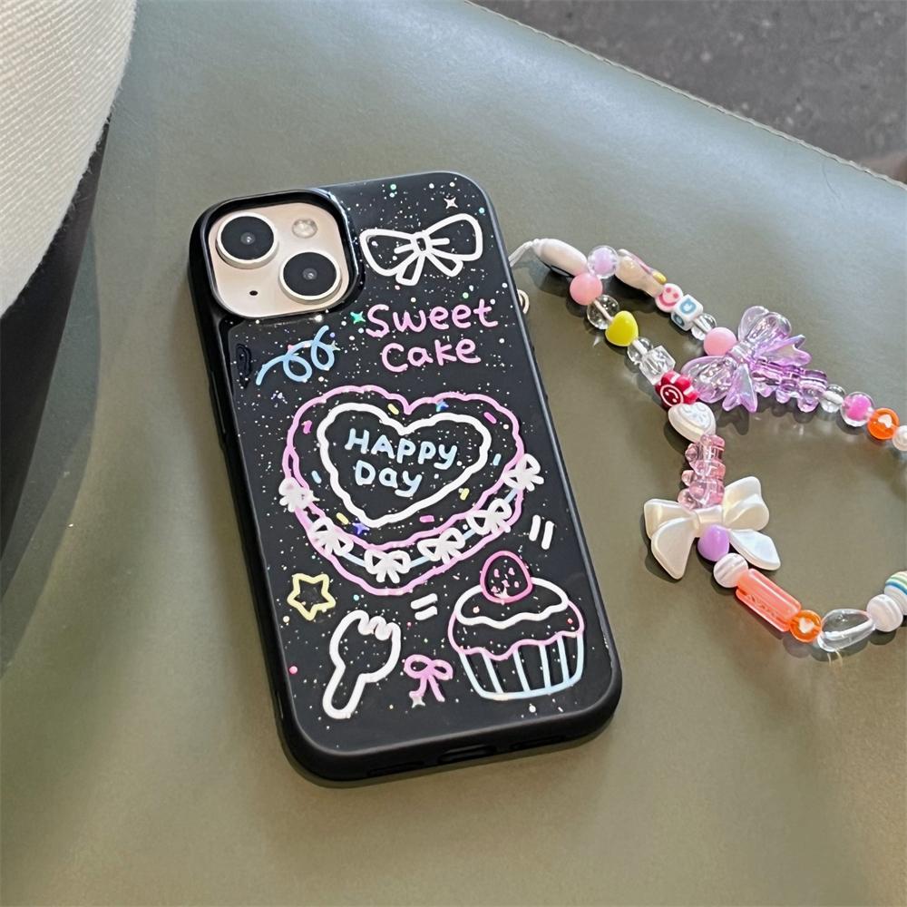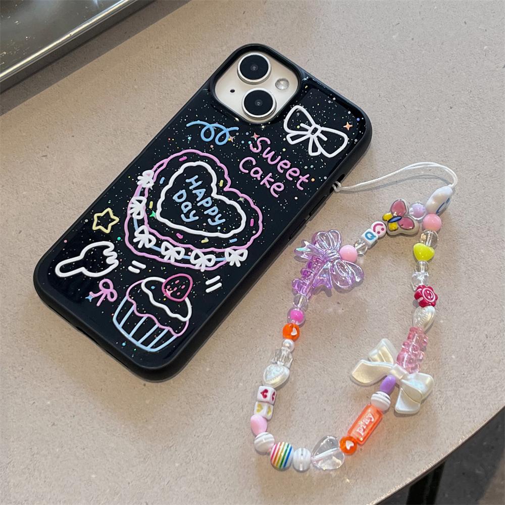 Корейский милый браслет из бисера с облаком и цепочкой, эпоксидный чехол для телефона для Iphone 14 13 12 Pro Max 11, противоударный чехол с милым граффити в форме сердца