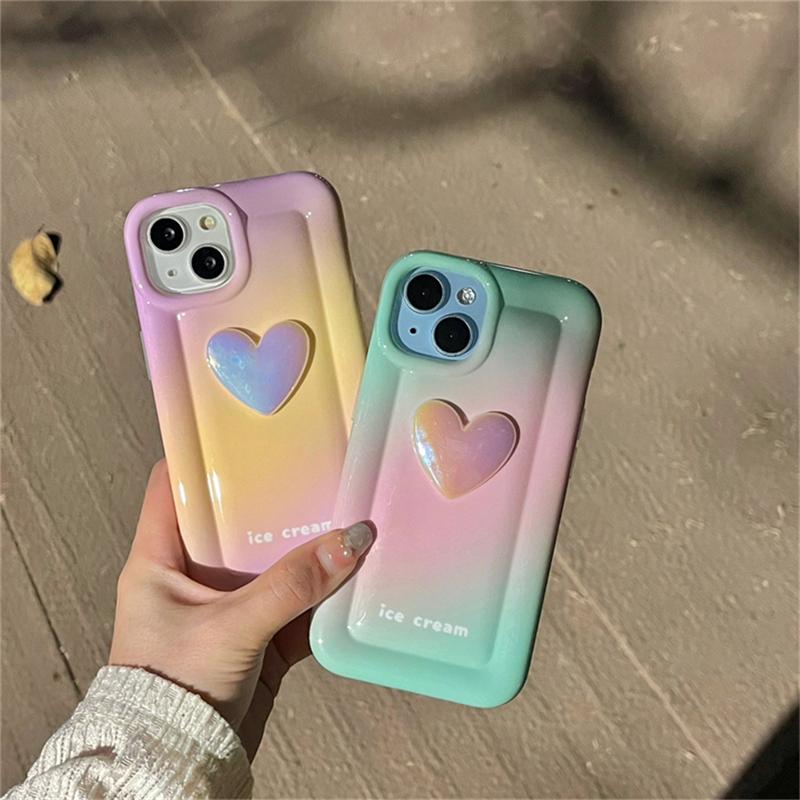 Корейский силиконовый чехол для телефона с 3d лазерным сердечком и градиентом для Iphone 14 13 12 11 Pro Max Smudge розовый простой противоударный мягкий чехол