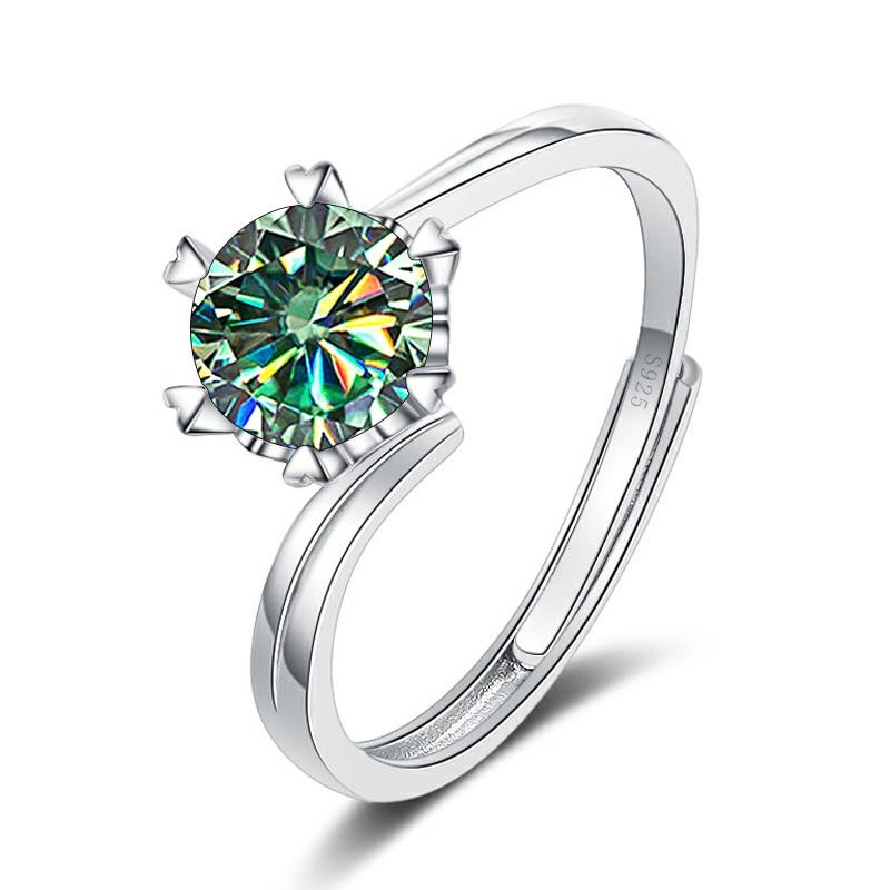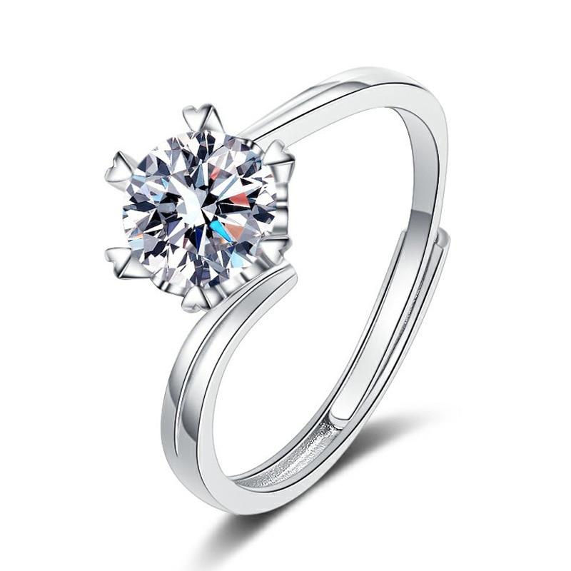 Bague Ringen Кольцо из стерлингового серебра 925 пробы, 1 карат, муассанит, ювелирные изделия с бриллиантами, снежинка, регулируемые кольца с шестью когтями для женщин