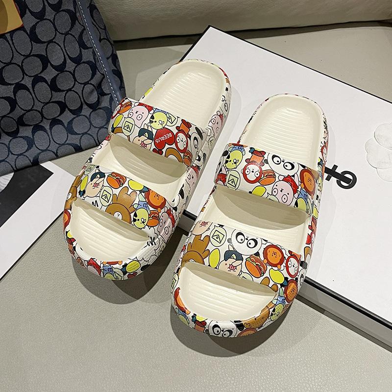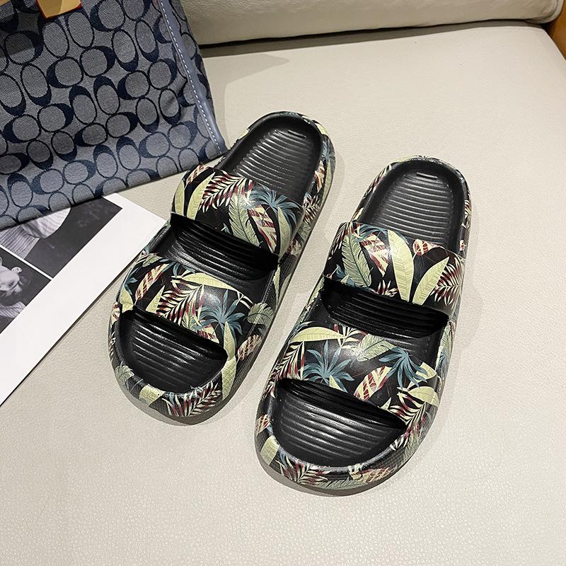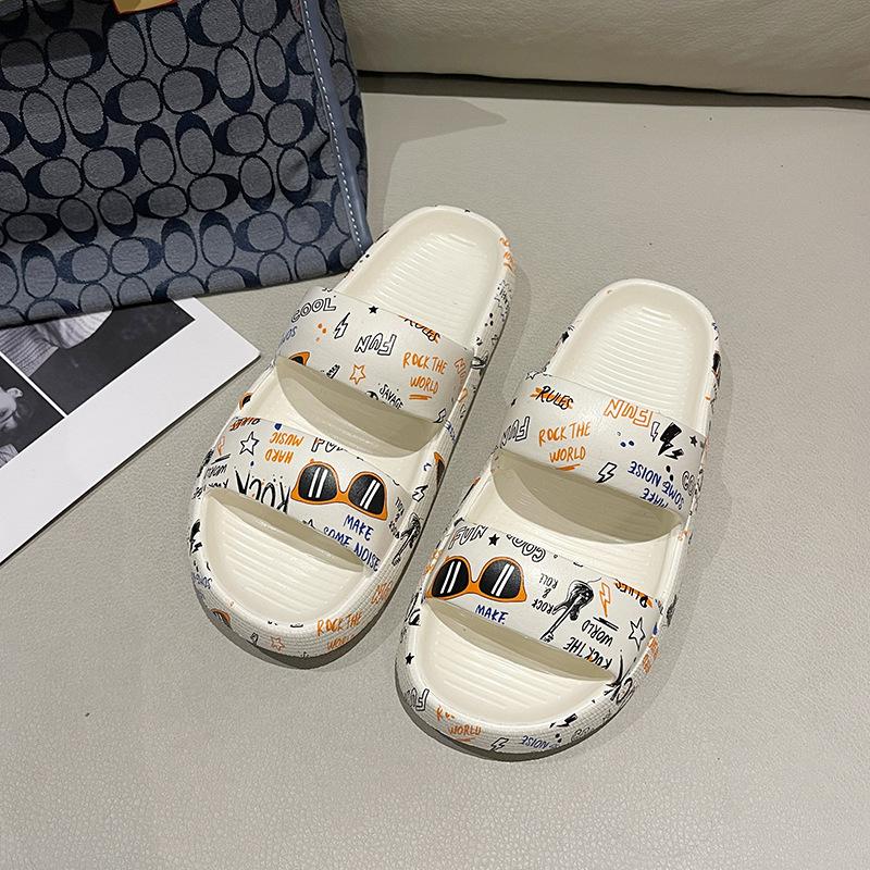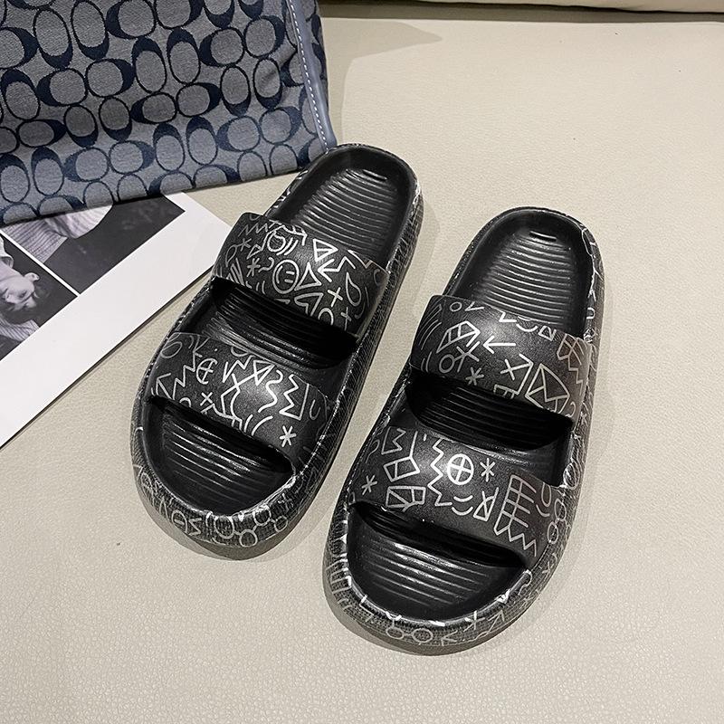 Летние домашние тапочки с одним словом для мужчин и женщин, нескользящие домашние тапочки в стиле граффити с толстой подошвой и мягкой подошвой
