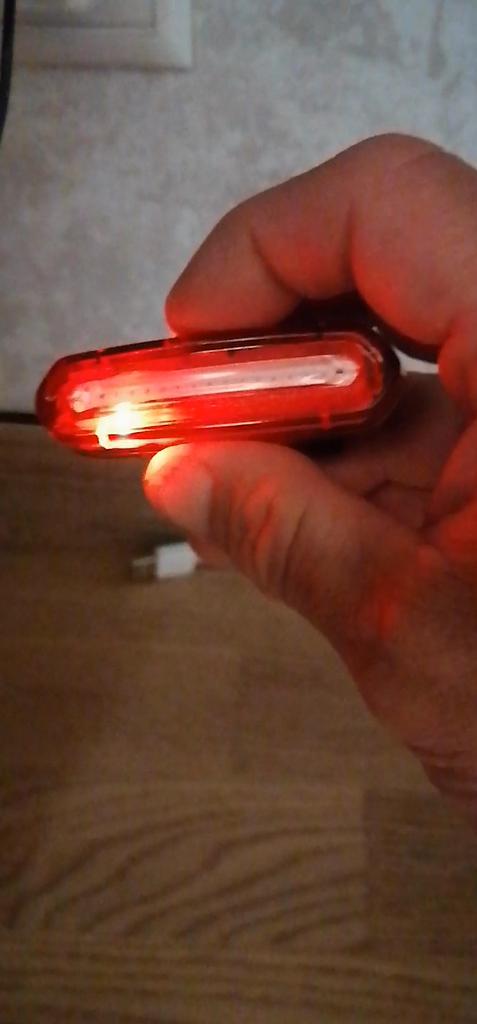 Задний красный фонарь, горит только один светодиод, зарядка в течении часа ничего не дала, тоесть не горит полностью ирежимы его тоже не переключаются