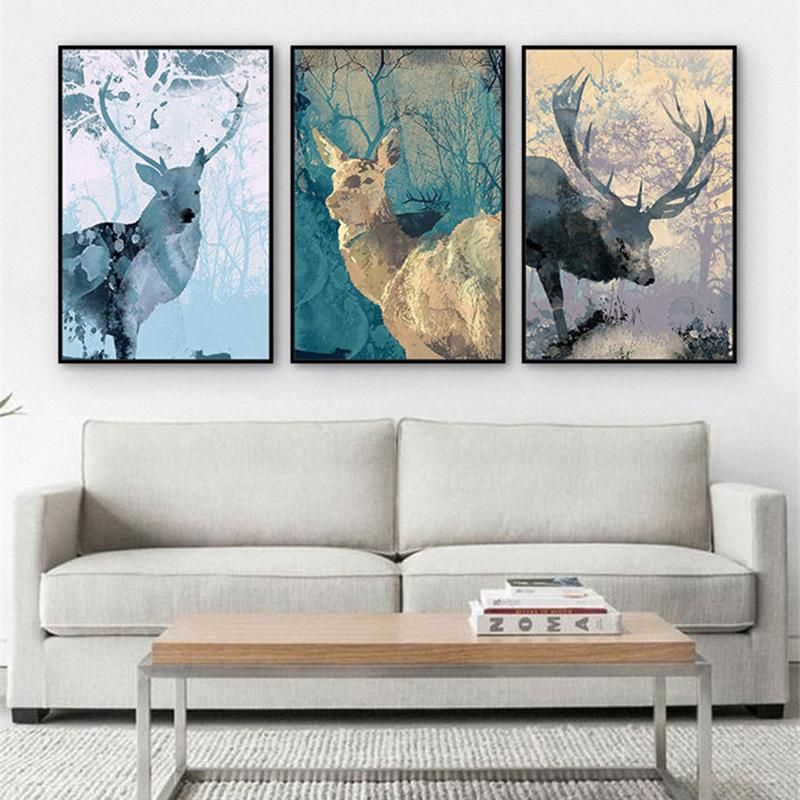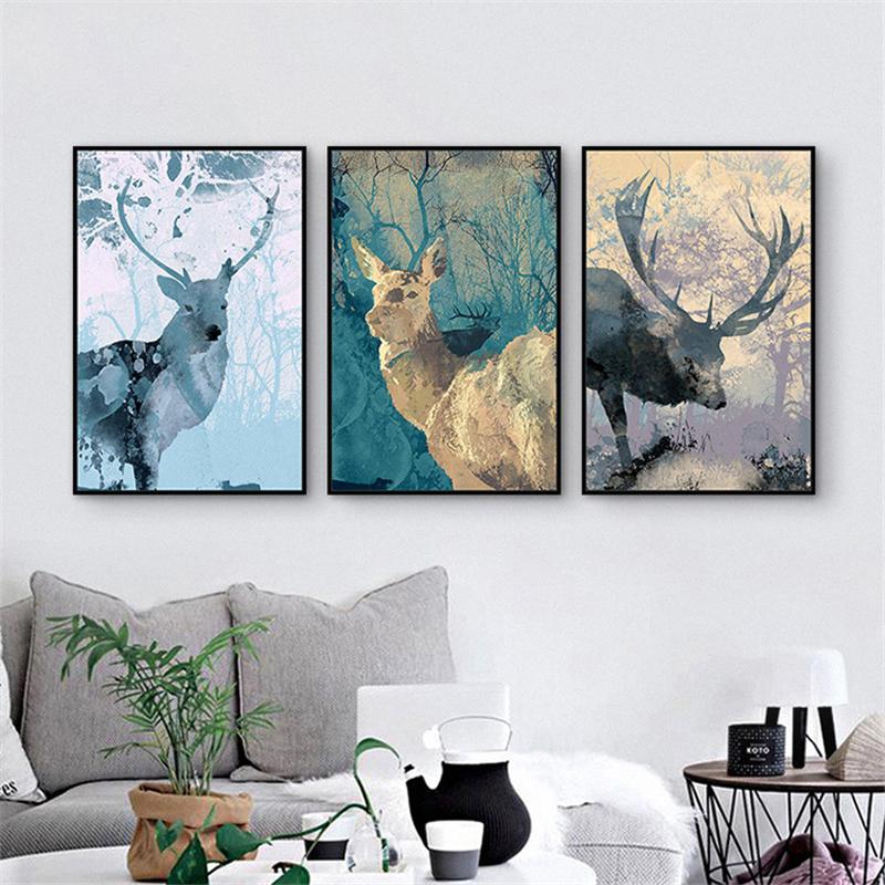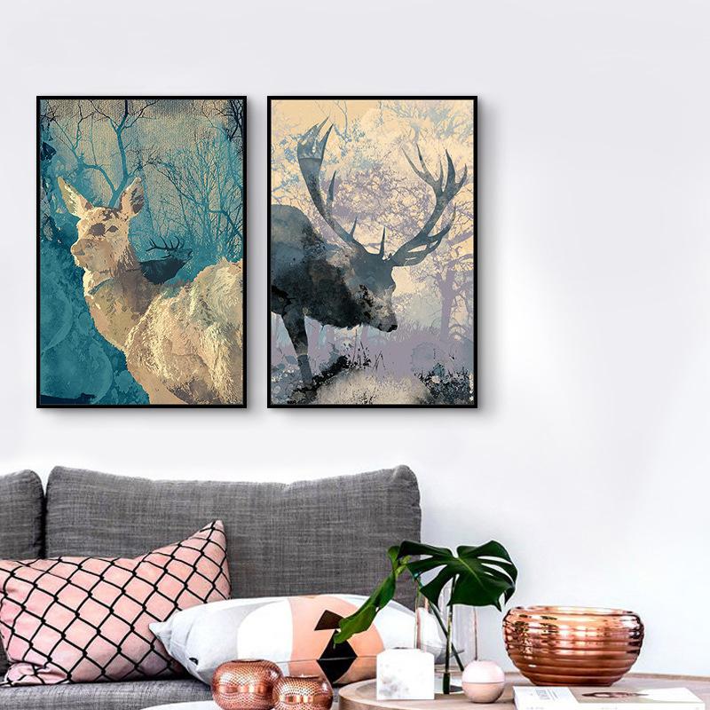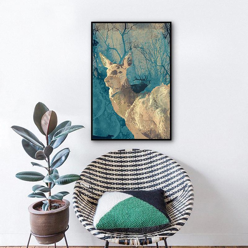 Безрамная ручная роспись на холсте, современный минималистичный постер с изображением оленя, скандинавская настенная картина, декор для детской комнаты
