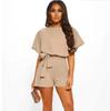 Женский модный однотонный комбинезон с короткими рукавами и поясом — купить товар онлайн с бесплатной доставкой до всему миру!
