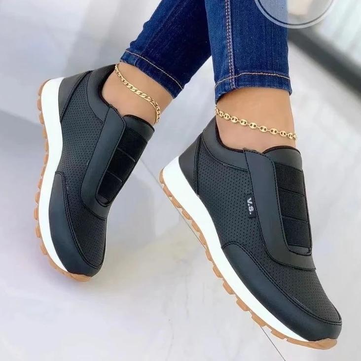 Повседневная спортивная обувь с круглым носком и плоской подошвой. Удобная женская обувь большого размера.