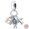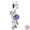 Подходит для модных оригинальных браслетов 925 пробы, серебро 925 пробы, серебро, синий, астронавт, самолет, подвески для путешествий, бусины, подвески для женщин, модные ювелирные изделия своими руками