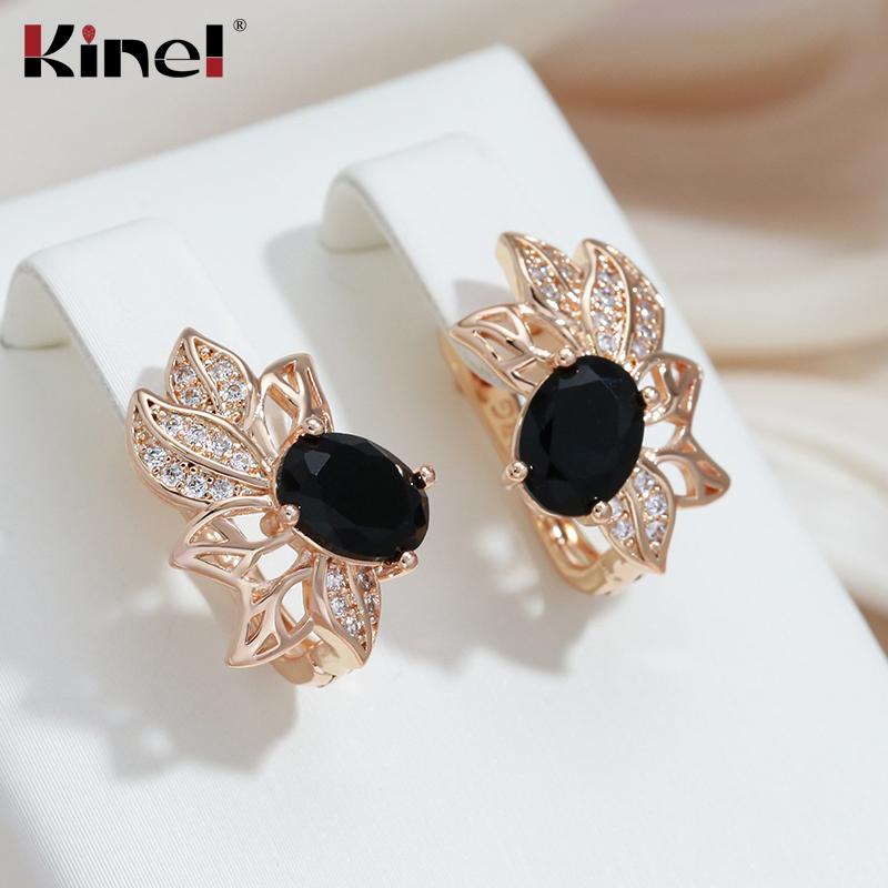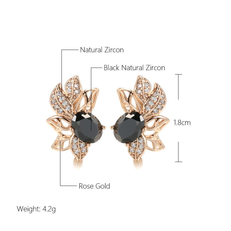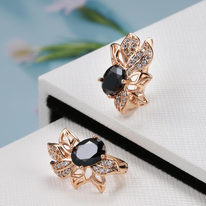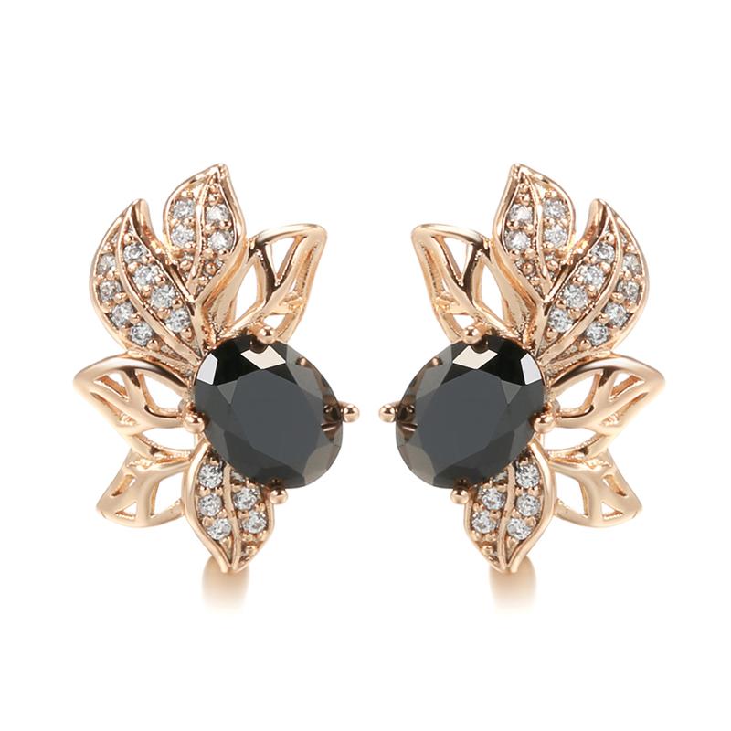 Женские английские серьги Kinel с черным цирконом в форме цветка