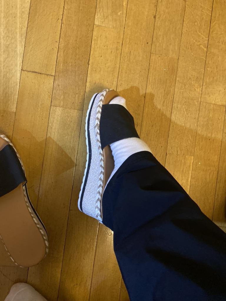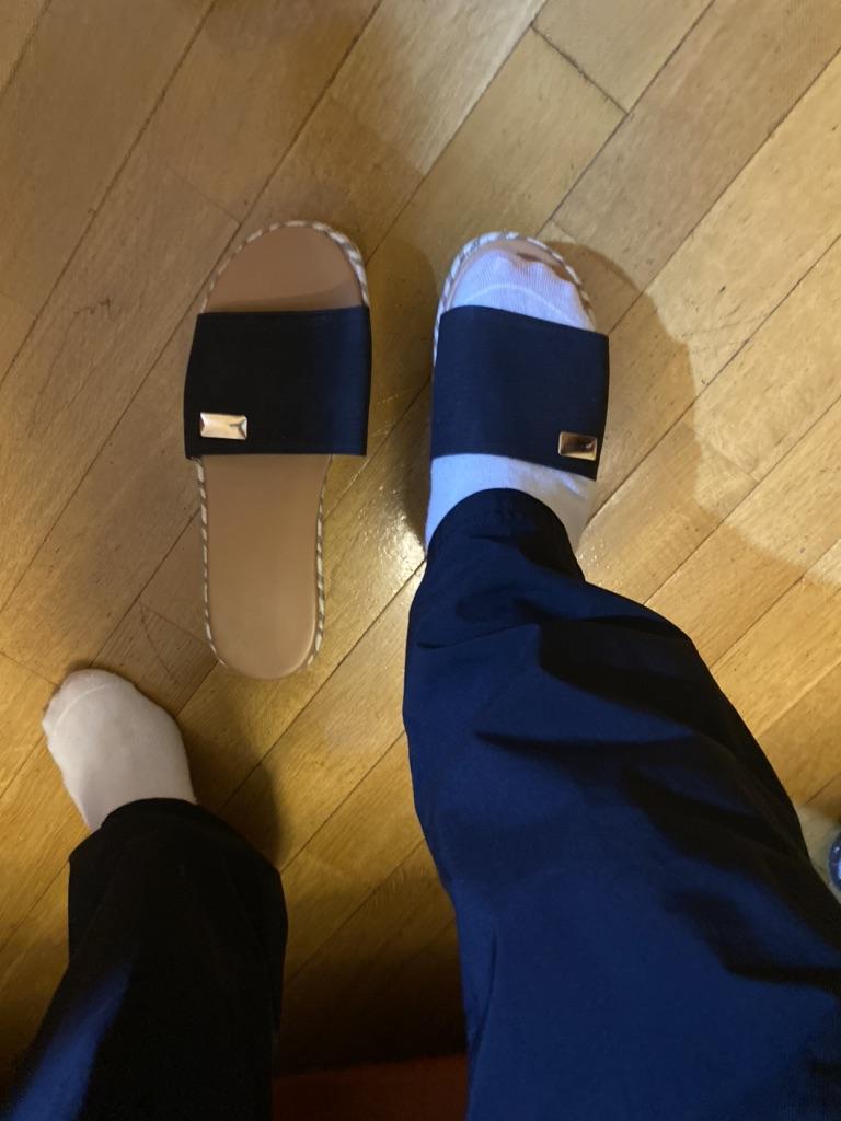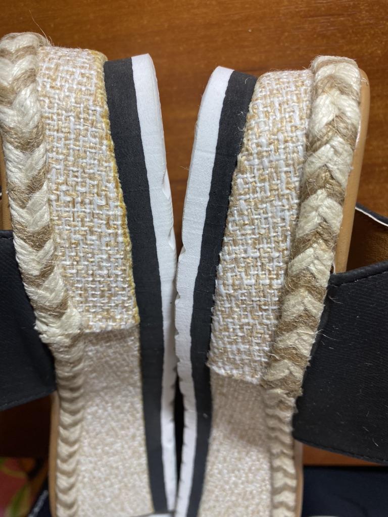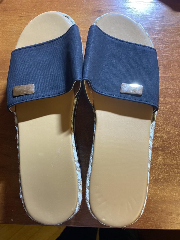 Очень долгая Доставка больше 2 месяцев. На 40 размер взяла 41. Сделано неаккуратно, видны следы желтого клея на деружке. Стелька совершенно ровная, скользкая, жесткая, нет минимально никакой амортизации, чтоб нога не уставала. Шлепает по паркету как подковой по асфальту. Мне не понравились шлепки. Верх не джинса как может показаться, в клеенка.