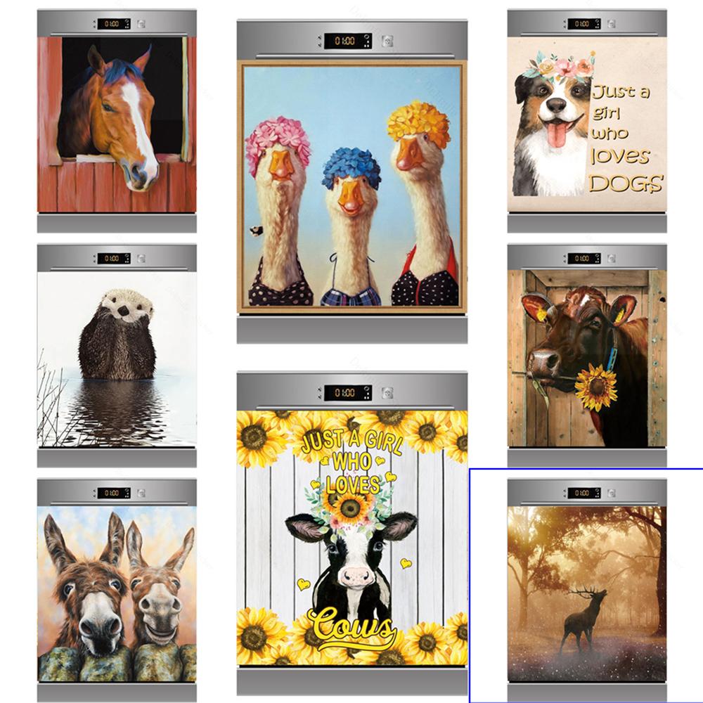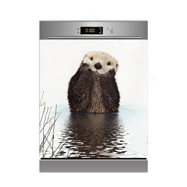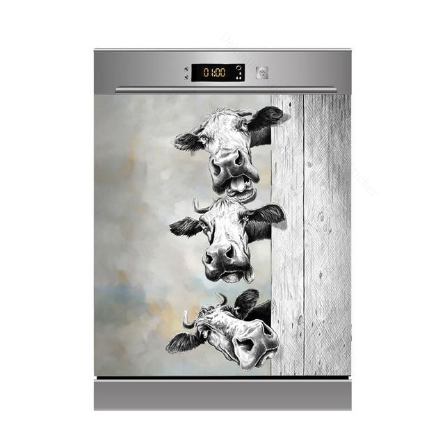 3D креативный рисунок забавных животных, художественный дизайн, самоклеящаяся наклейка на дверь холодильника, посудомоечной машины, обои, наклейка на стену, кухня
