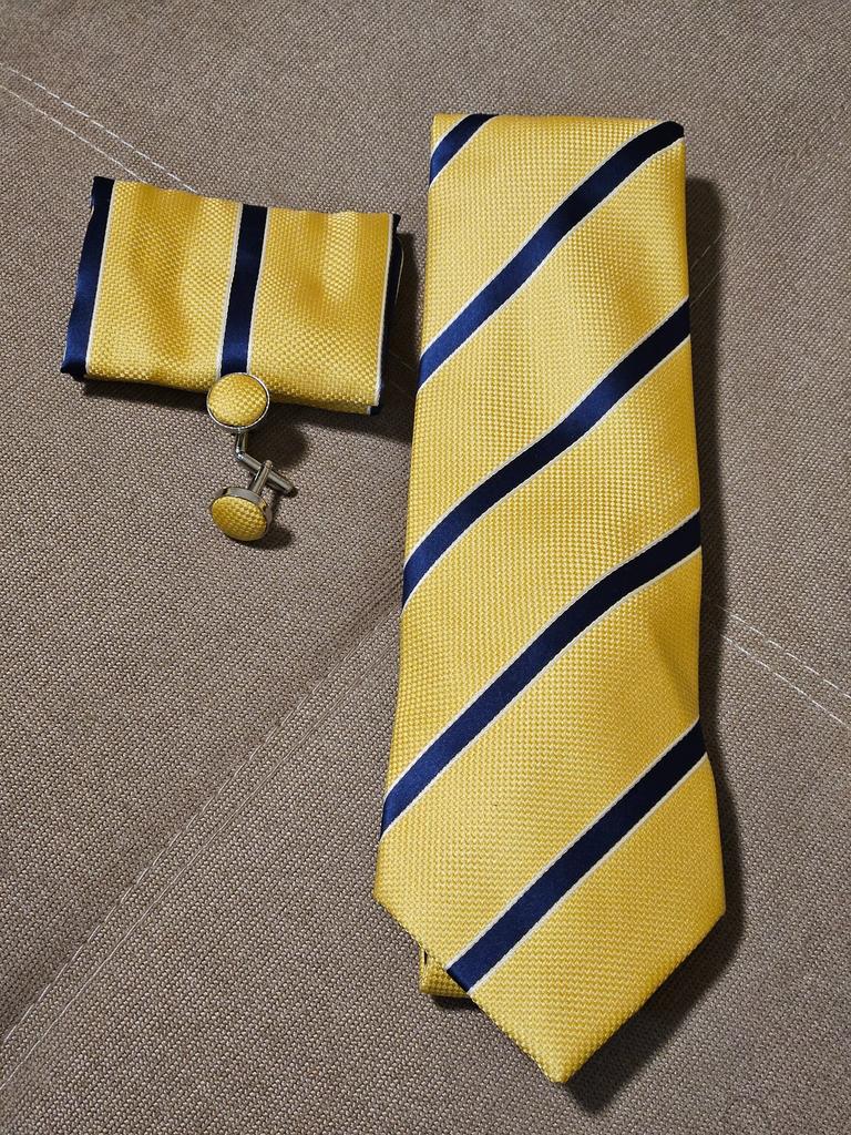 Hi-Tie Мужской галстук желтый синий полосатый галстук носовой платок запонки свадебный галстук выпускной вечер