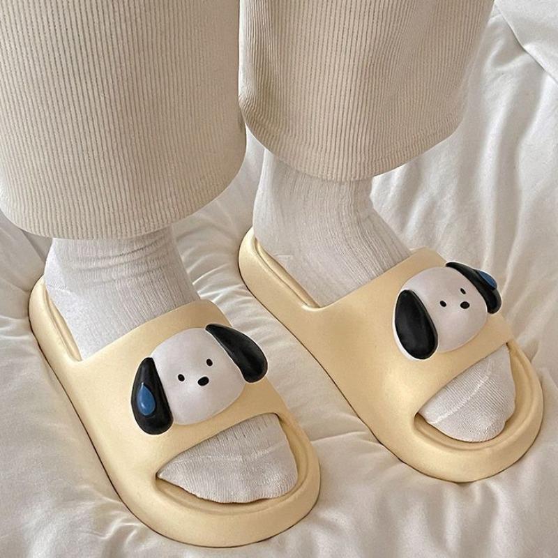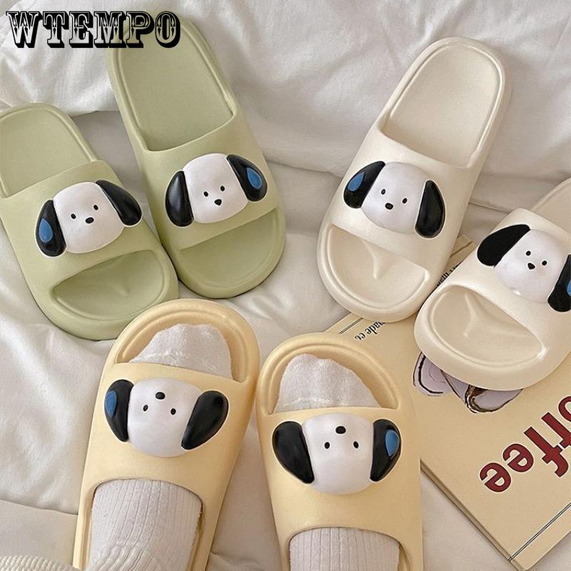 WTEMPO Милые тапочки, женские тапочки с мультяшной собакой, мягкая подошва и плоский каблук, противоскользящая толстая подошва, удобные повседневные домашние тапочки для ванной комнаты, устойчивые к запаху