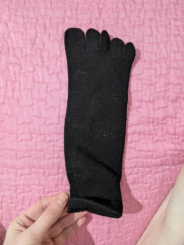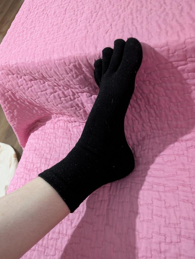 Носочки средней плотности. На соединениях пальчиков немного узковато, давит. Не комфортно. Пожалела, что заказала сразу 3 шт. Отдала дочке, но и на неё впритык. Носки без пятки. На мой 40 размер носки чуть выше косточки. Вобщем, короткие.