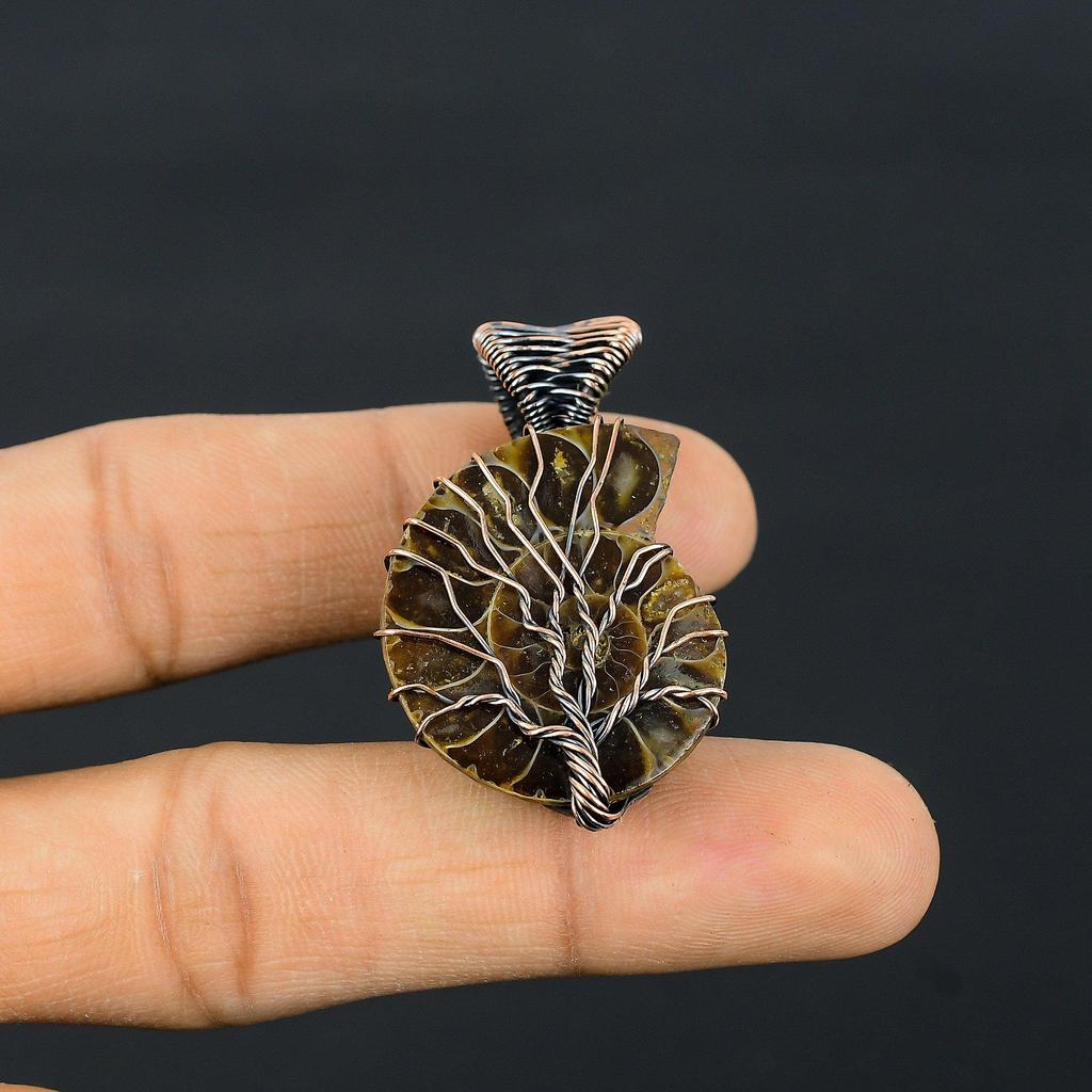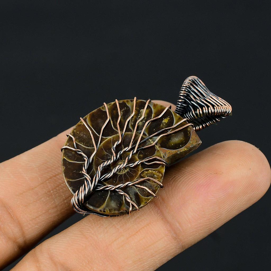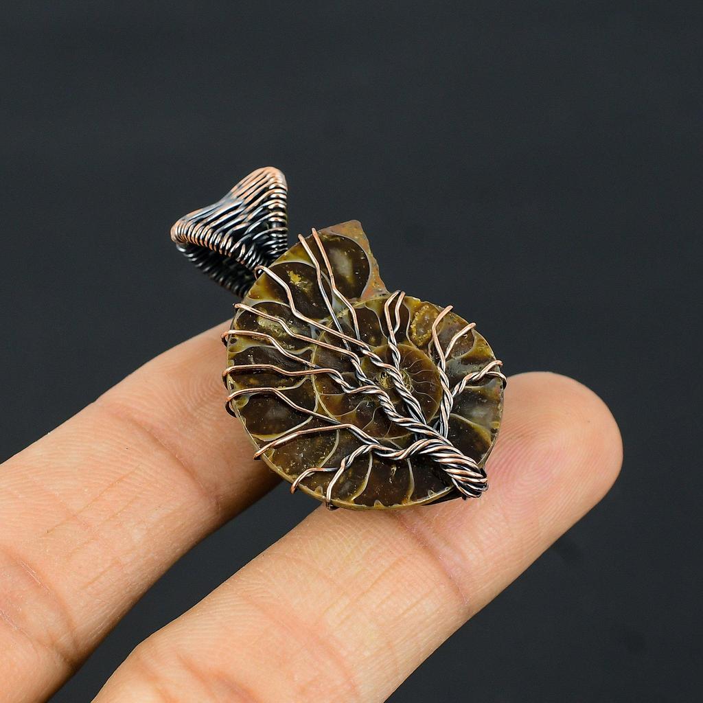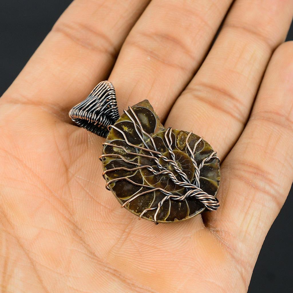 Древо Жизни Аммонит Ископаемый Драгоценный Камень Медная Проволока Обертка Кулон Ручной Работы Ювелирные Изделия Для Подарка