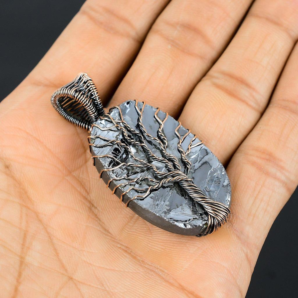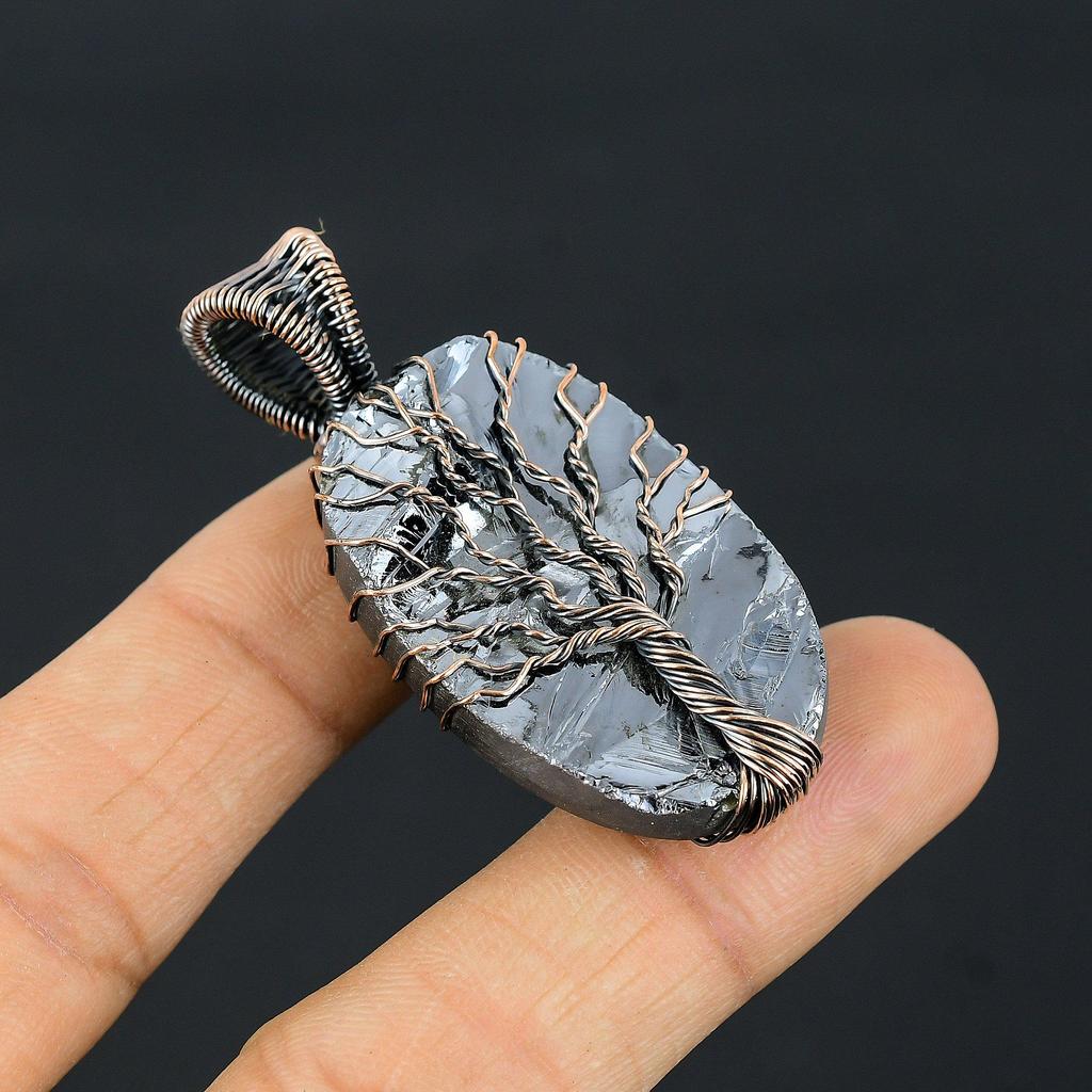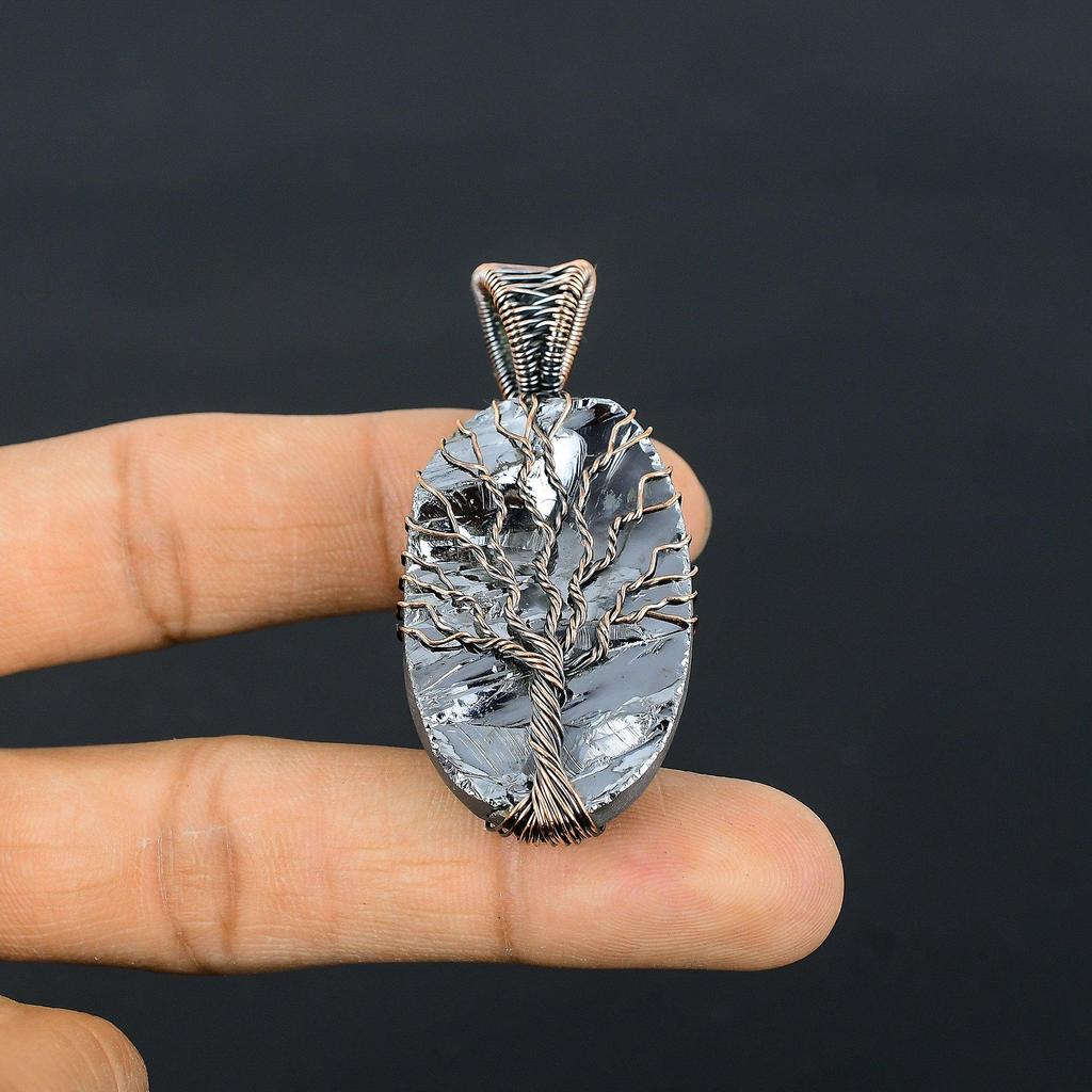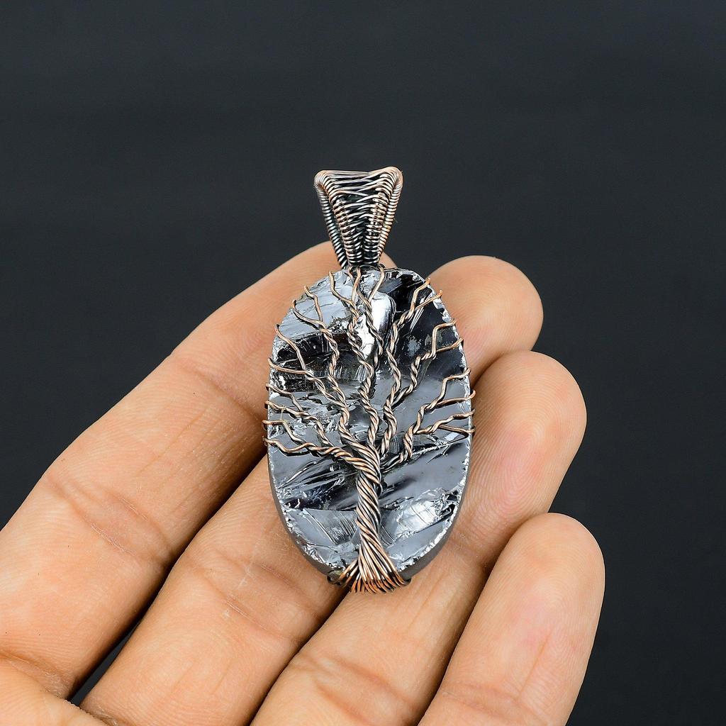 Древо Жизни Шунгит Драгоценный Камень Медная Проволока Обертка Кулон Ручной Работы Ювелирные Изделия Подарок Для Любви