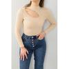 Прозрачные блузки Женская трикотажная блузка в рубчик с вырезами и детальной отделкой