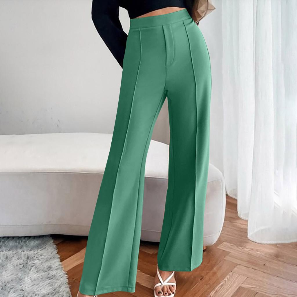 Женские повседневные спортивные брюки с высокой талией, тонкие широкие брюки, расклешенные однотонные тонкие брюки