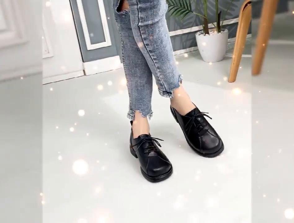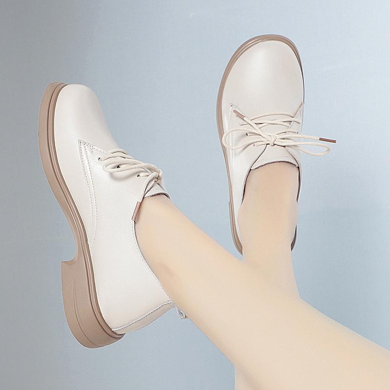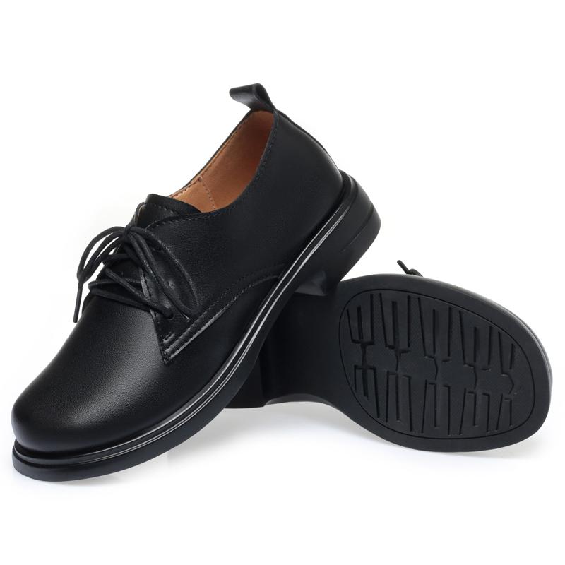 Женская обувь, весенняя женская обувь из натуральной кожи на толстом каблуке, женская обувь в британском стиле, рабочая обувь с круглым носком на шнуровке для женщин