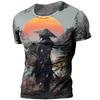 Футболка «Самурай» с 3D принтом в японском стиле, топы с короткими рукавами, футболки, повседневная мужская футболка в стиле ретро, винтажная мужская одежда большого размера