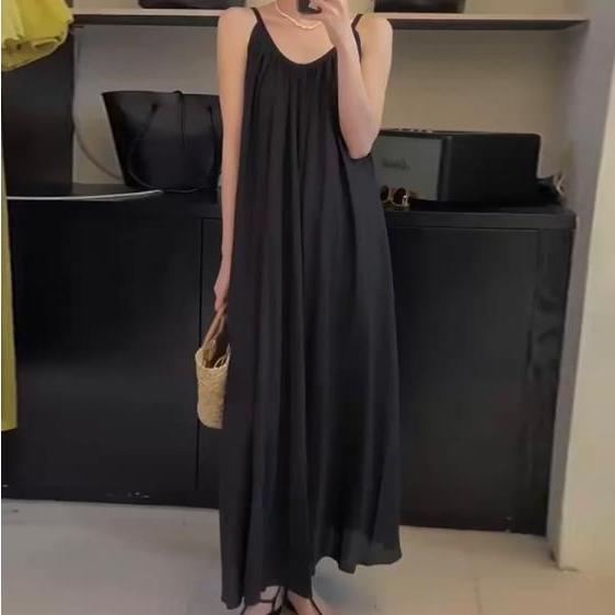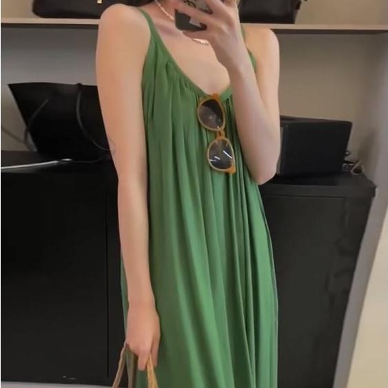 Женские платья Антивозрастные платья с бретельками на бретельках Свободный нишевый дизайн Плиссированные драпированные платья средней длины размера плюс