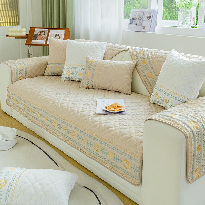 Четырехсезонная подушка для дивана, нескользящая, простая, современная, в скандинавском стиле, сплошной цвет, чехол для дивана с вышивкой, ткань, полотенце