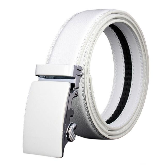 Мужской модный кожаный ремень с автоматической пряжкой, роскошный мужской ремень Cinturones Hombre, черный, белый цвет, ремни с пряжкой из сплава для мужчин