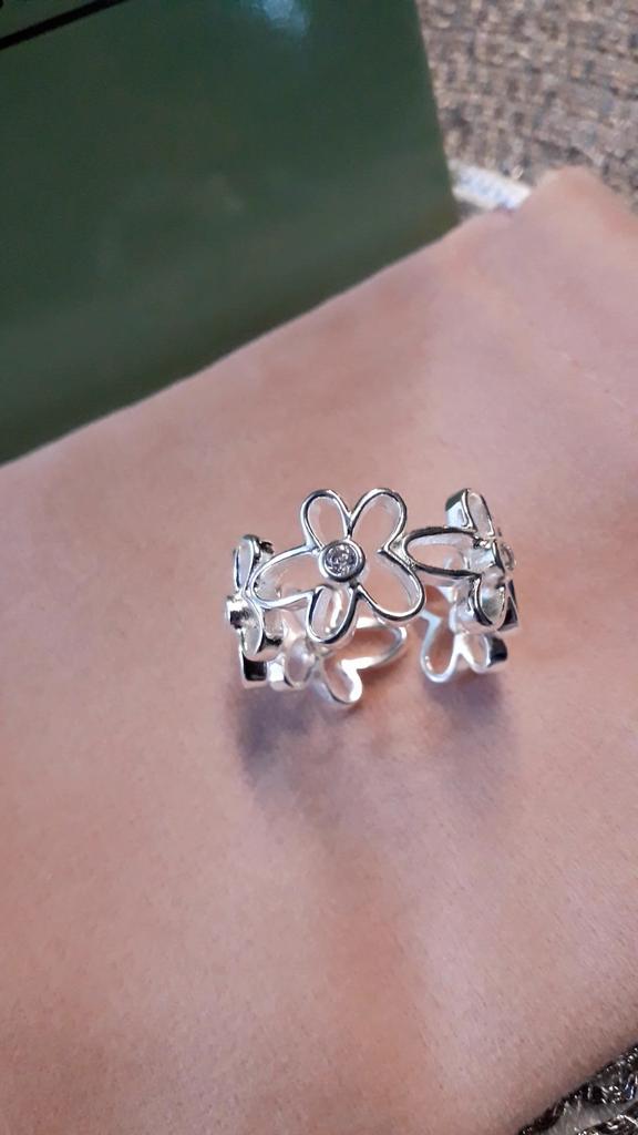 Серебряное Кольцо с полыми цветочками, смотрится нежно. Рекомендую к покупке.