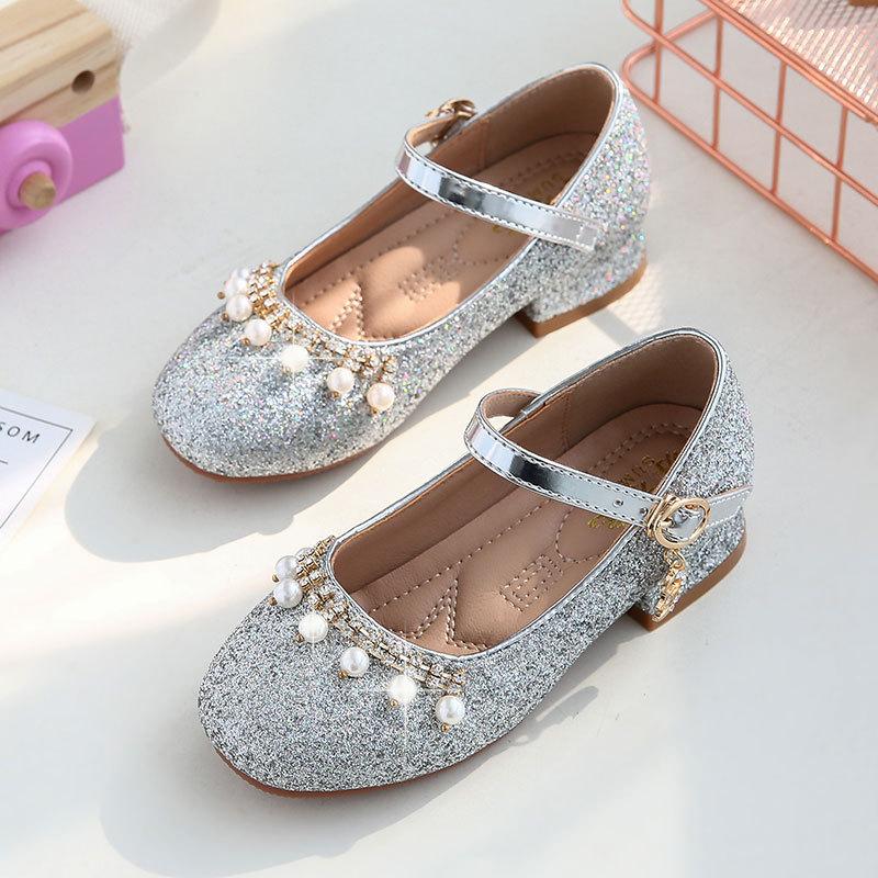 Обувь для девочек. Большие детские туфли принцессы с кристаллами. Маленькие детские туфли на высоком каблуке.