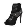 Новые стильные сандалии, женские ботинки из сетчатой пряжи на высоком каблуке с открытым носком, сапоги из сетчатой ткани, женские черные сандалии на шпильке