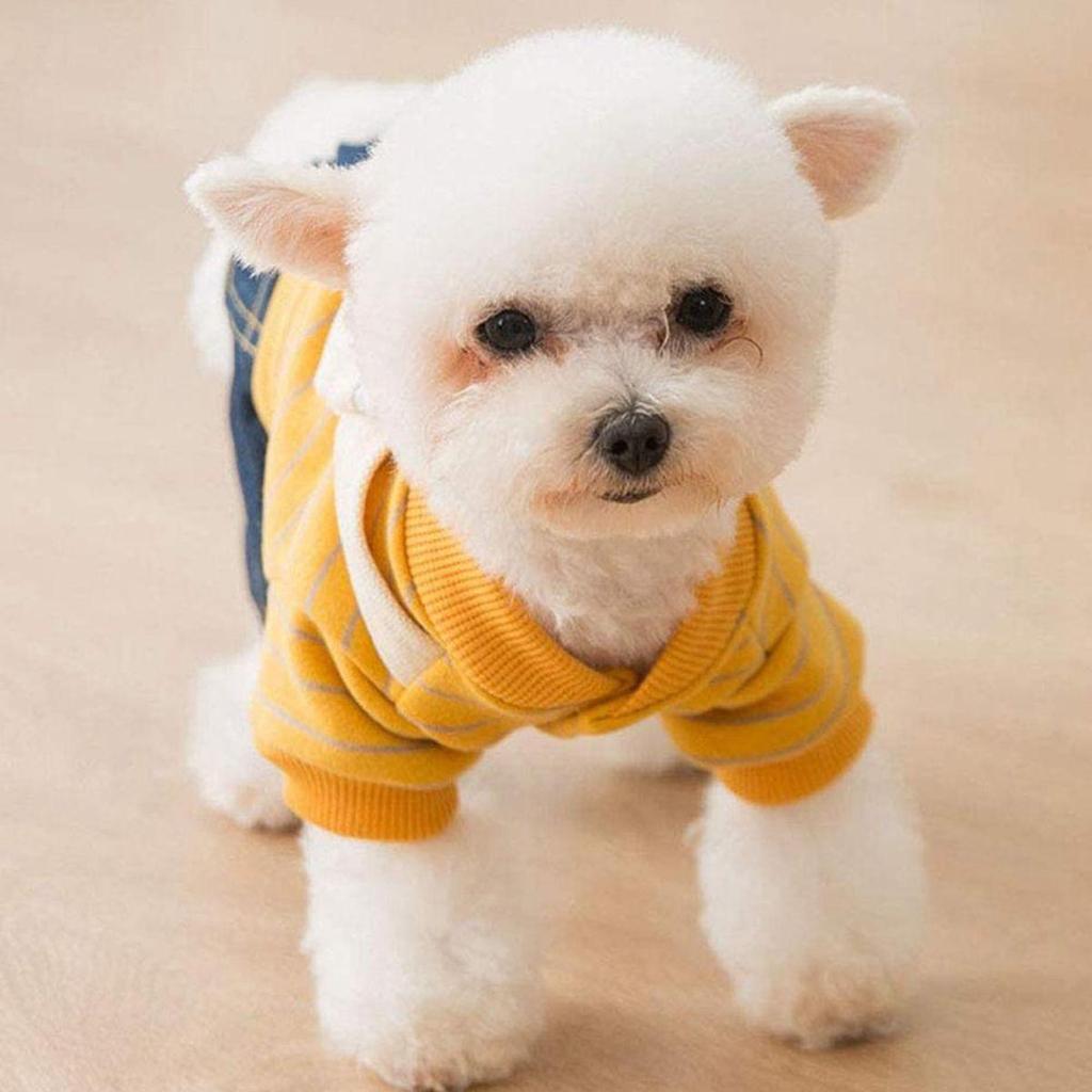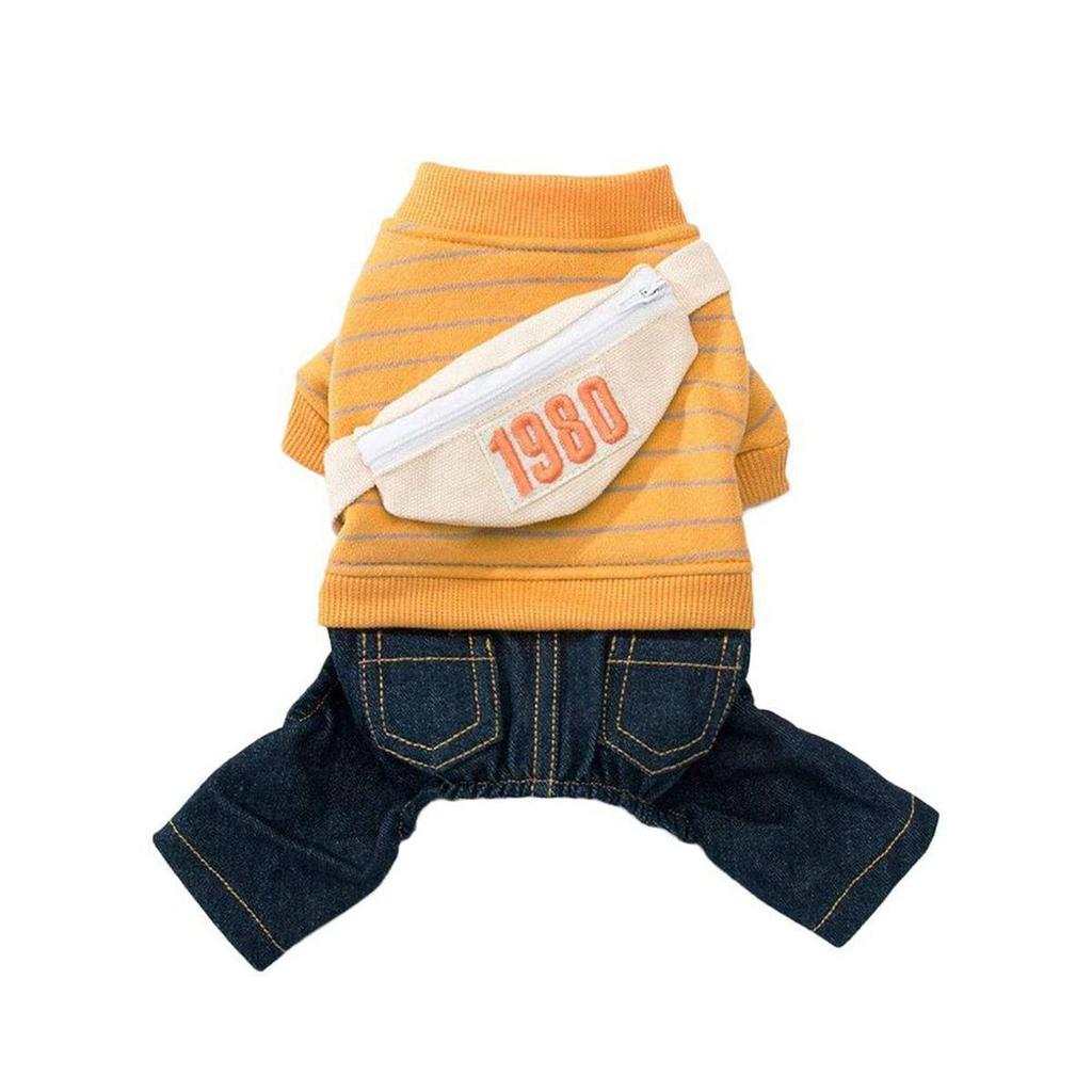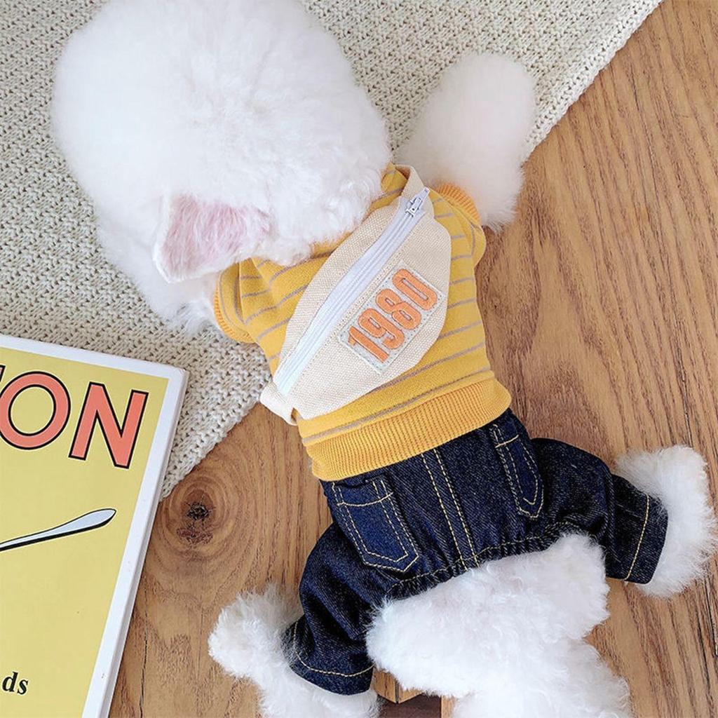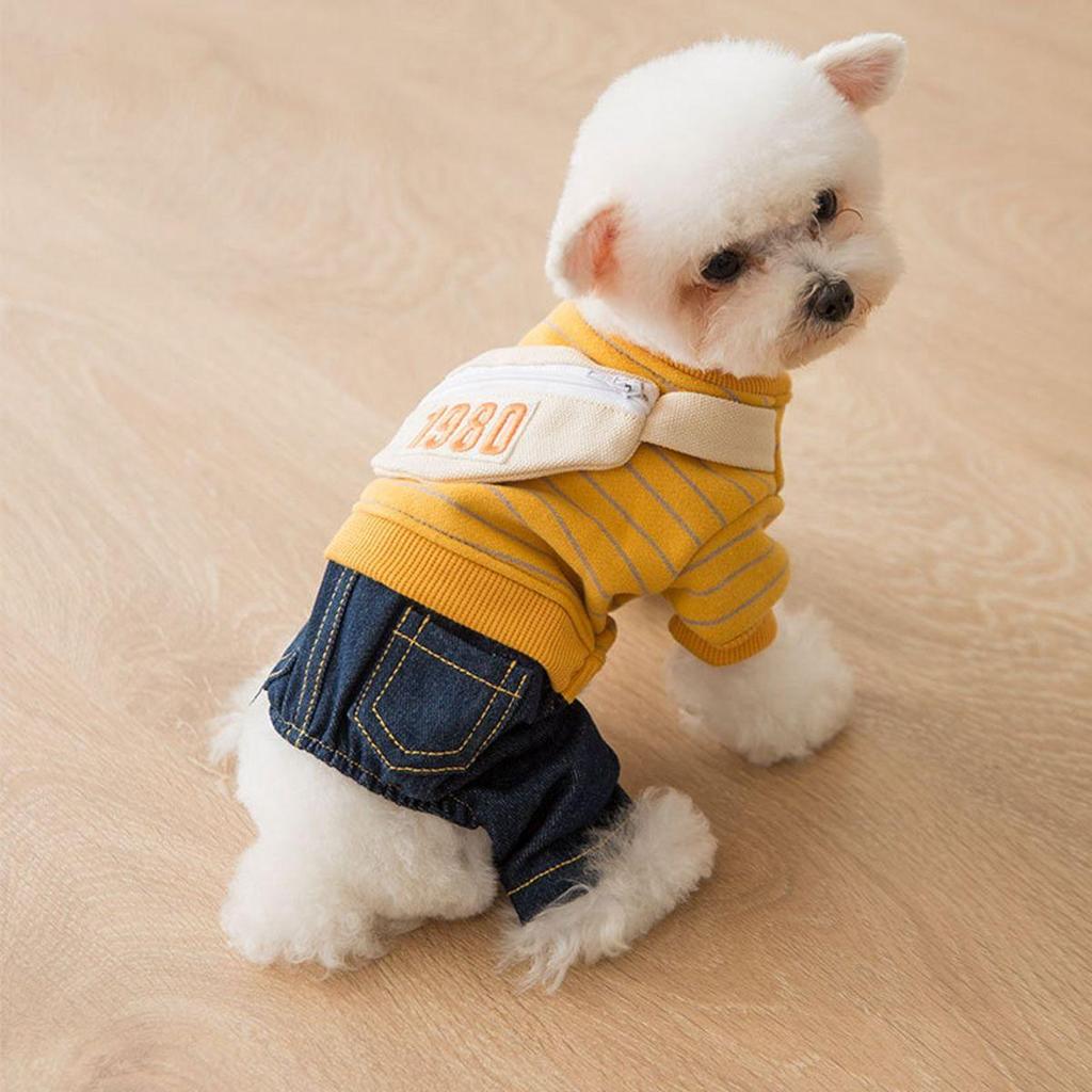 Зимние милые полосатые теплые брюки, джинсовые джинсы, толстовка для домашних животных, толстовка с капюшоном для собаки, комбинезон для щенка