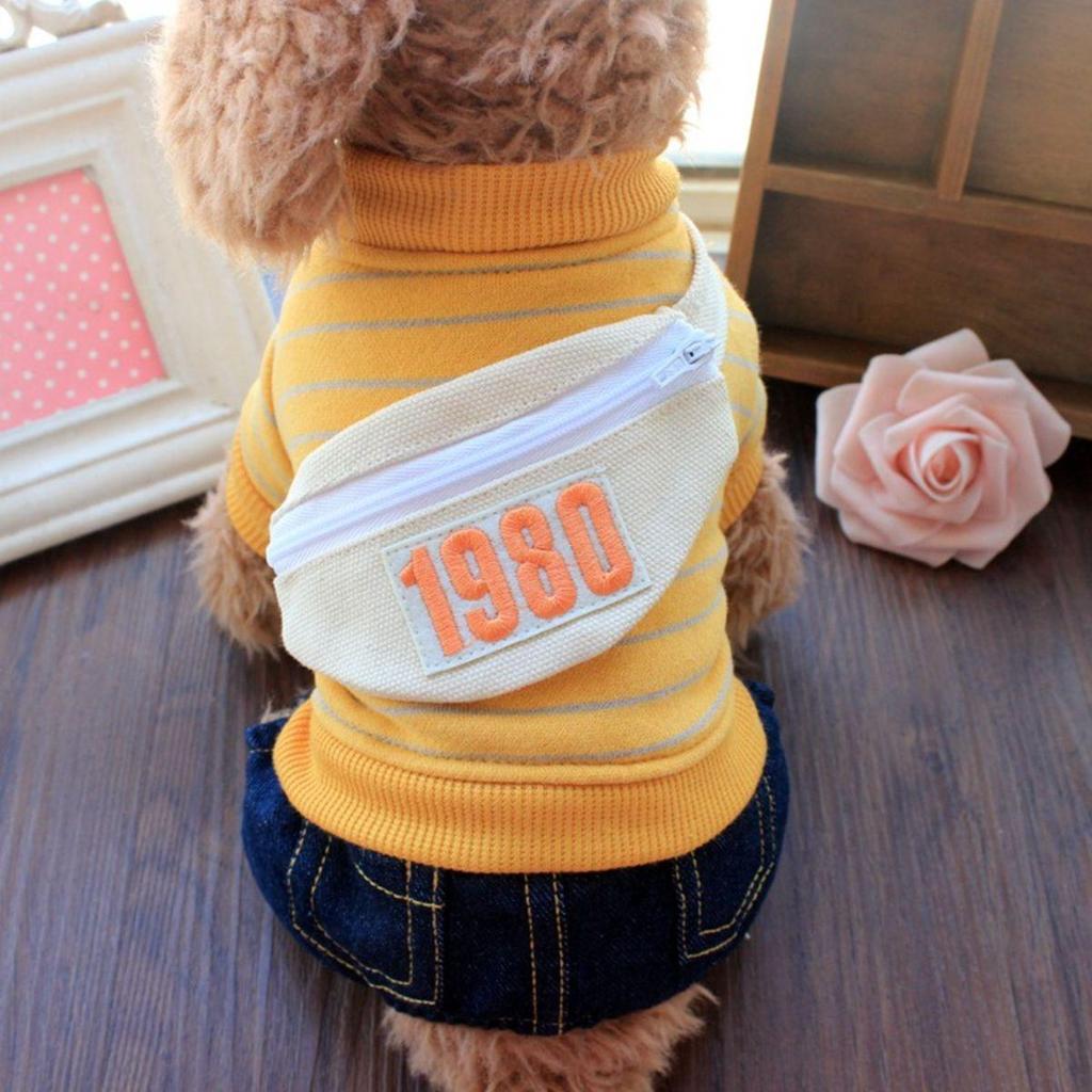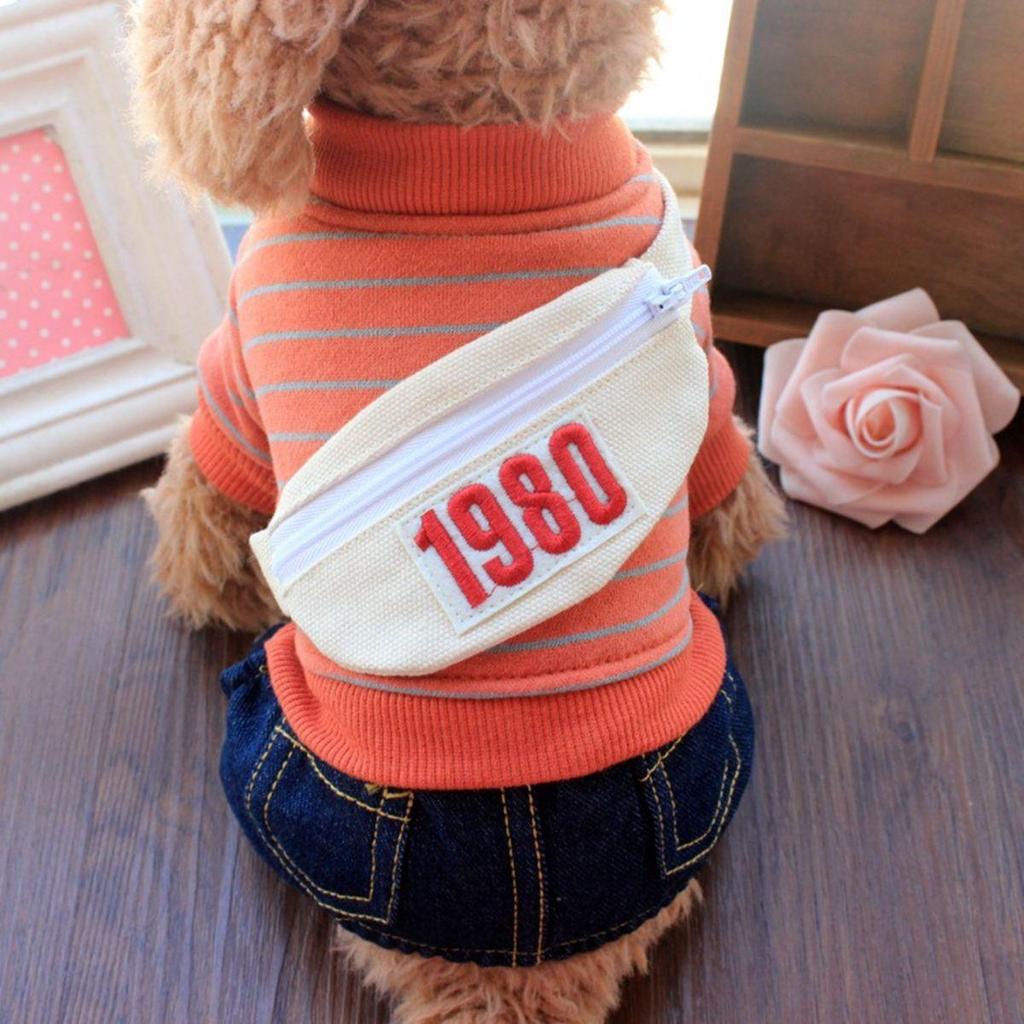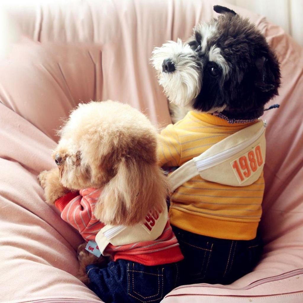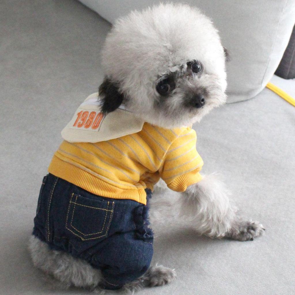 Зимние милые полосатые теплые брюки, джинсовые джинсы, толстовка для домашних животных, толстовка с капюшоном для собаки, комбинезон для щенка