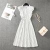 Летние шифоновые платья миди с цветочным принтом без рукавов, женское платье в стиле бохо с рюшами и стоячим воротником, трапециевидное платье на бретелях, женск...