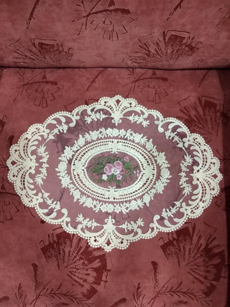 Хорошенькая салфеточка. Кружево в действительности намного грубее, чем кажется на фото. Но за 153-00 рубля пойдет.