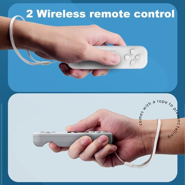 7. Встроенные 30 видов интерактивных соматосенсорных игр, 800 игр формата NES, используя две беспроводные ручки дистанционного управления, с веревкой против падения, игроки могут играть в различные соматосенсорные игры, такие как резка арбуза, бег, йога и т. Д. Качался.