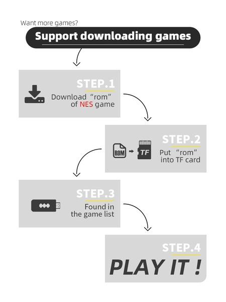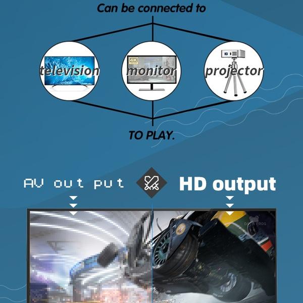3. Просто подключите игровую консоль к интерфейсу HDMI телевизора, подключите USB-шнур питания к хосту, а затем настройте источник ТВ-сигнала на соответствующий канал высокой четкости, чтобы отобразить экран списка игр на телевизоре. Рукояткой можно управлять дистанционно, вставляя сухие батарейки. Подключи и играй, простой и щедрый, легкий в эксплуатации.
