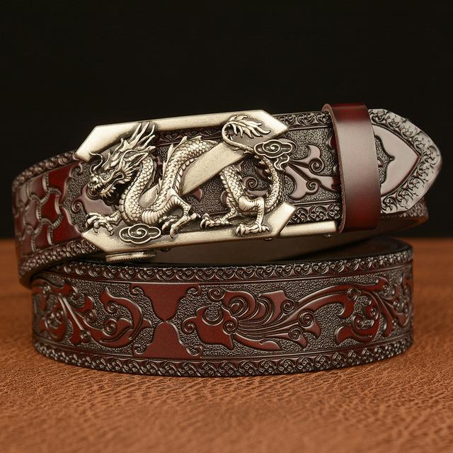 3,5 см модные мужские ремни с тиснением в стиле ретро для мужчин, деловой ремень из воловьей кожи с узором дракона, ремешок с автоматической пряжкой