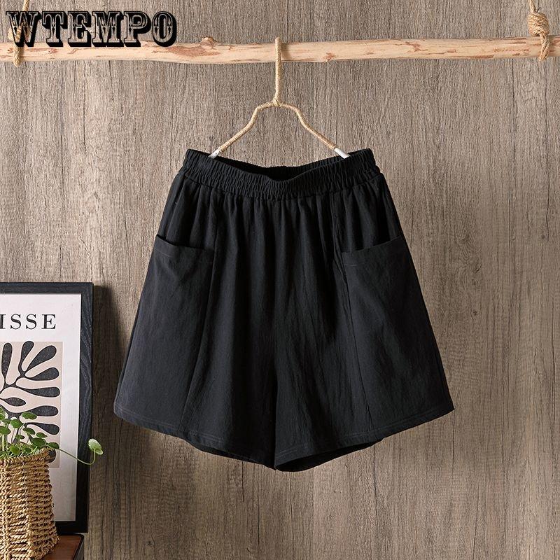 Женские шорты размера плюс, хлопковые льняные брюки, тонкие широкие брюки с эластичной резинкой на талии и высокой талией, свободные повседневные брюки из пяти частей — купить товар онлайн с бесплатной доставкой по всему миру!