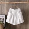Женские шорты размера плюс, хлопковые льняные брюки, тонкие широкие брюки с эластичной резинкой на талии и высокой талией, свободные повседневные брюки из пяти частей