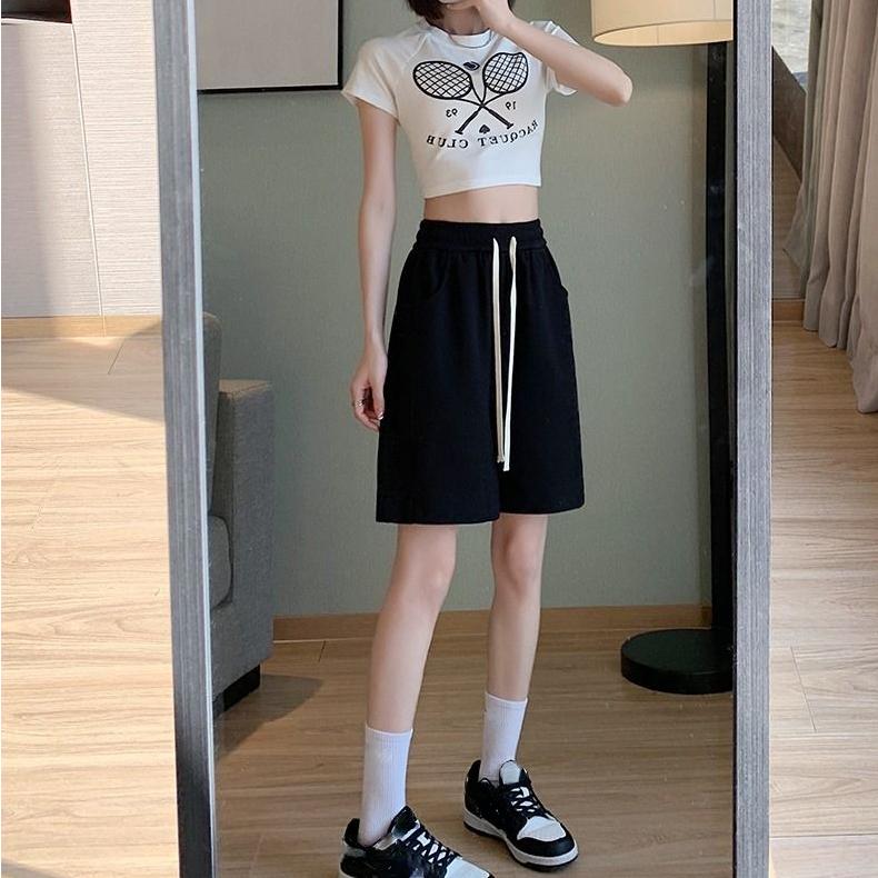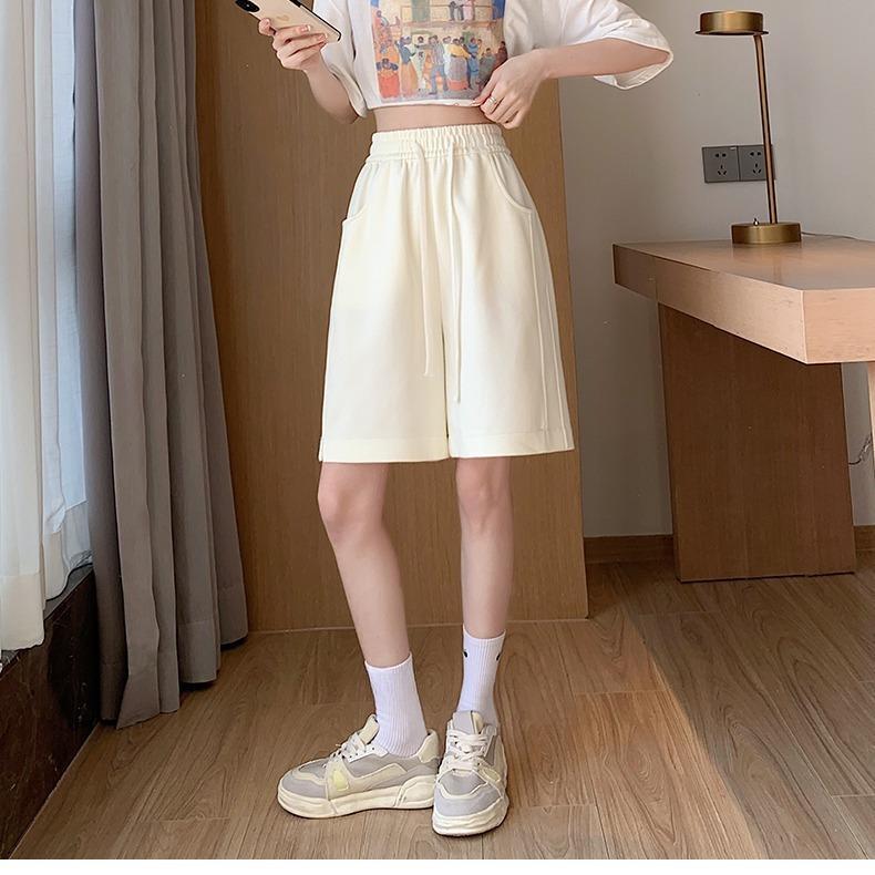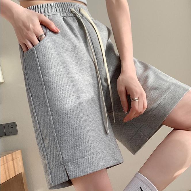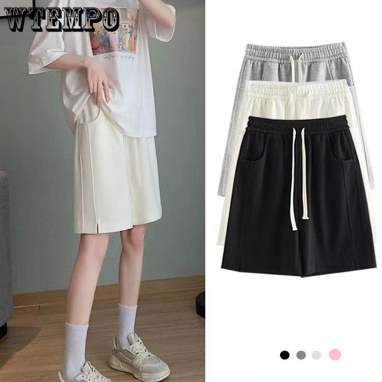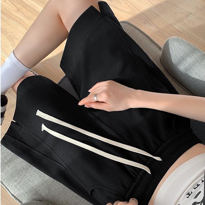 Женские шорты, спортивные штаны больших размеров, тонкие брюки, повседневные свободные брюки с высокой талией, прямые широкие брюки с пятью точками