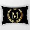 Золотой цвет, чехол для подушки с буквенным принтом, 30x50 см, прямоугольная наволочка, чехол с короной и листьями, растение, полиэстер, черный чехол для диванной подушки, домашний декор