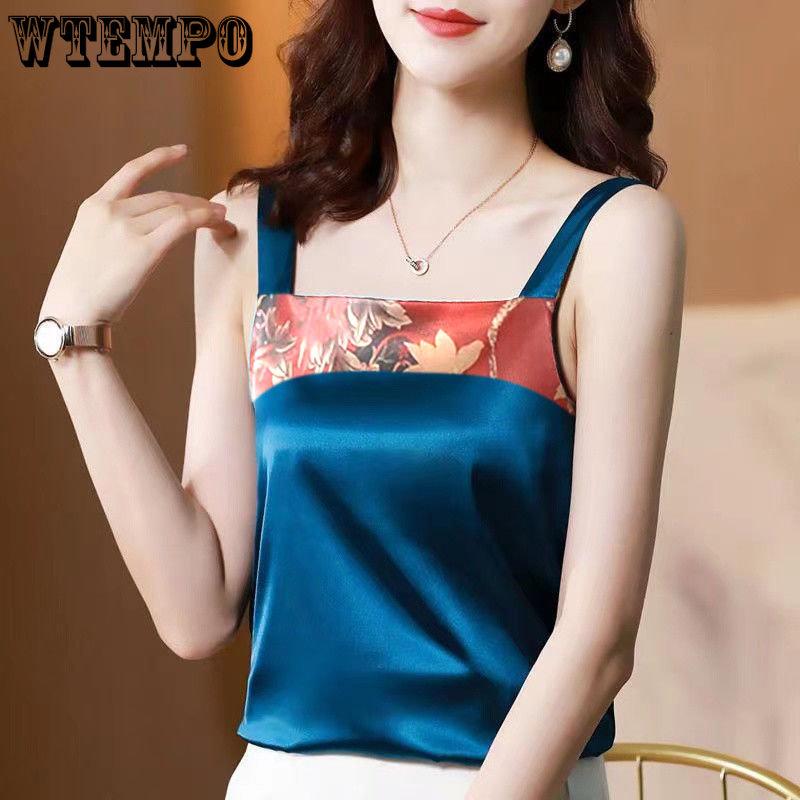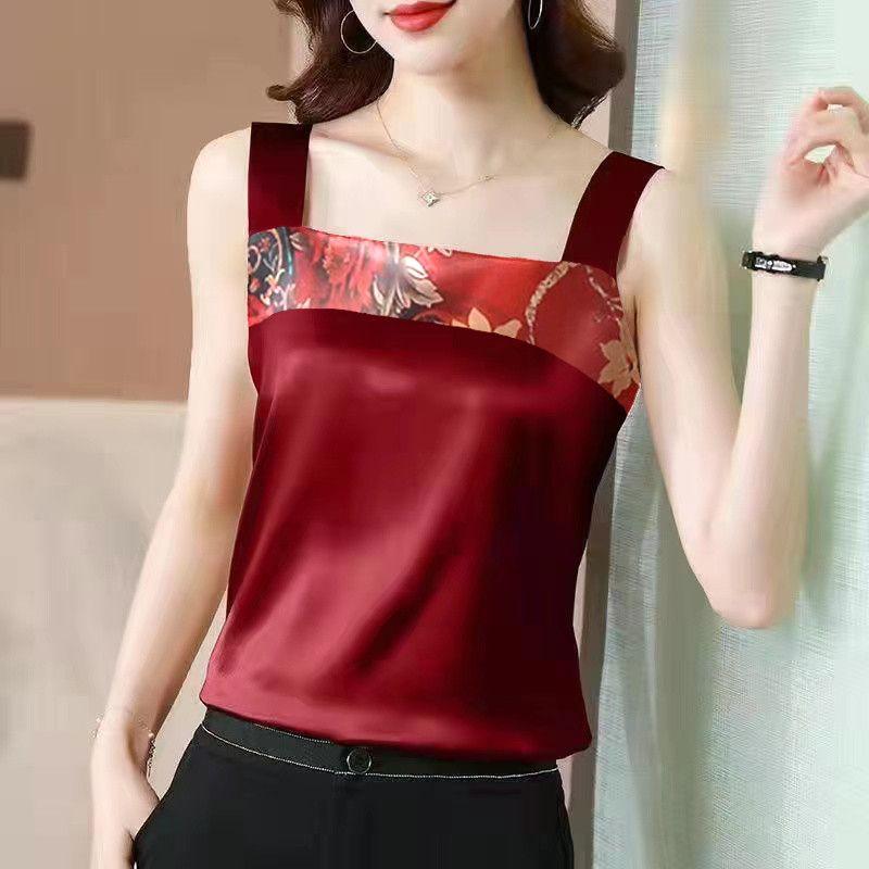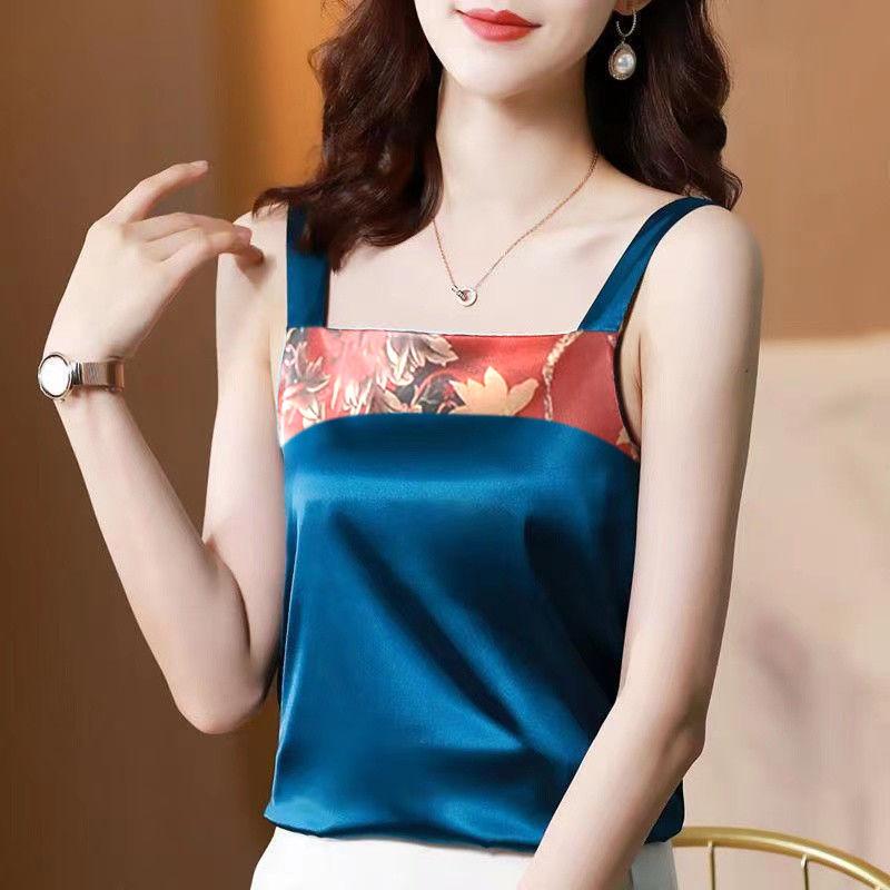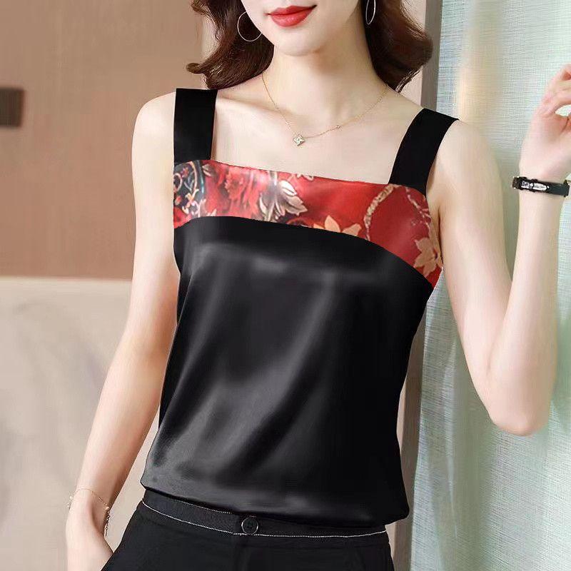Женский однотонный топ с цветочным принтом, женский атласный шелковый топ размера плюс 4XL, свободный тонкий топ без рукавов
