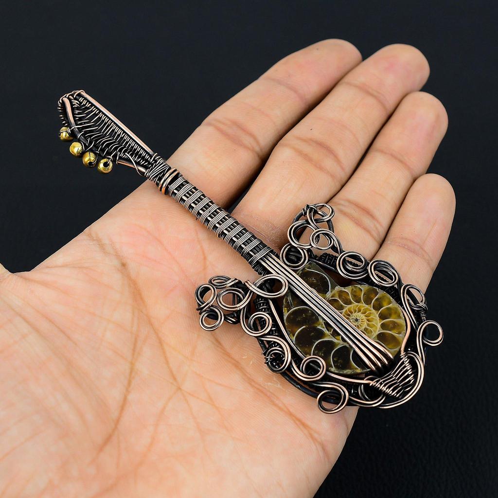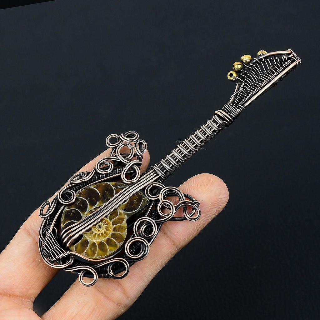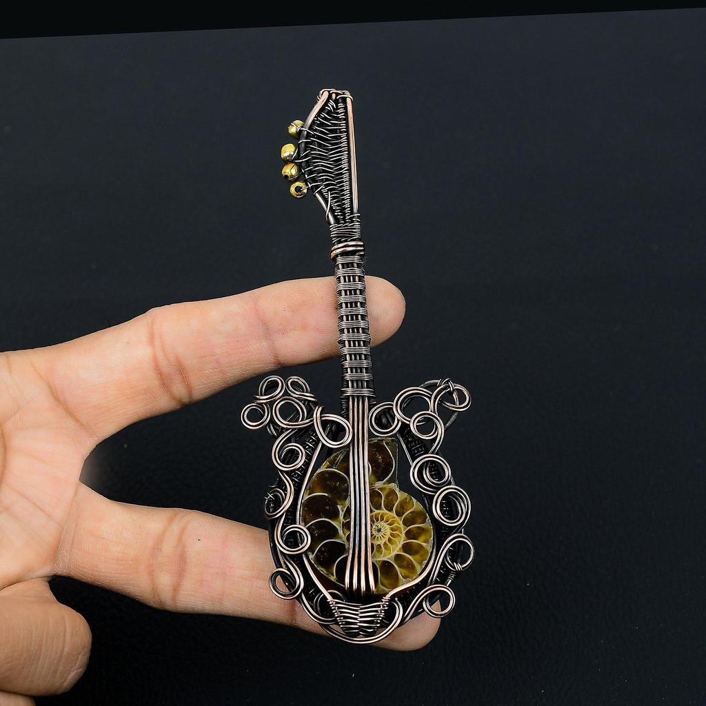 Гитара в форме аммонита ископаемый драгоценный камень медная проволока обернутая ювелирная подвеска ручной работы для нее