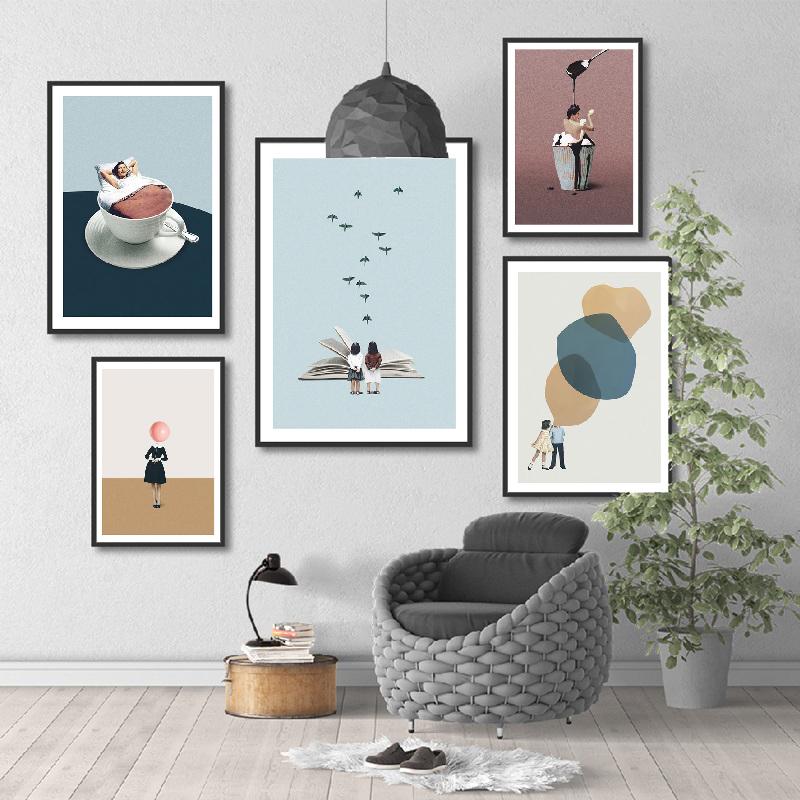 Абстрактный астронавт скандинавский воздушный шар кофе птицы пустынный дым плакат стены книги по искусству печать холст живопись Декор фотографии для гостиной