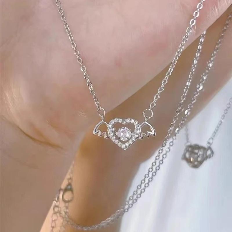 Ожерелье с подвеской в виде крыльев ангела в форме сердца для женщин, подвески с кристаллами циркона, ожерелья, корейская мода, ожерелье с цепочкой на ключицы, аксессуары