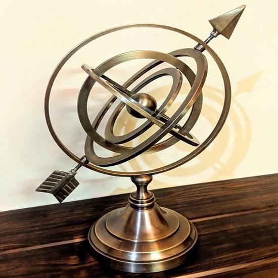 Армиллярные сферы с их тонкими кольцами и красивыми формами стали символом науки.. Около 255 г. до н.э. у Эратосфена могли развиться армиллярные сферы.. Компоненты этих устройств состоят из ряда градуированных колец, которые изображают несколько кругов небесной сферы, включая меридиан, экватор, горизонт эклиптики, тропики и цвета.. Армиллярную сферу можно использовать для отслеживания движения солнца в любой день года или для определения местоположения звезды.. Медная сфера в центре армиллярной сферы заменяет Землю.