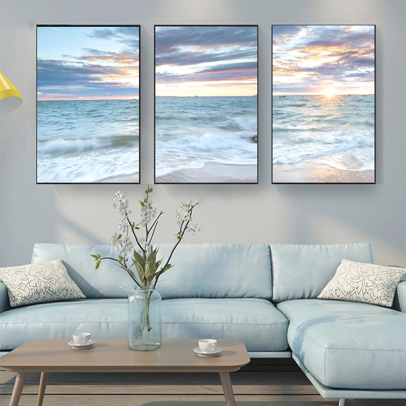 Восход Прибрежный Синий Морской Пейзаж Волны Картина Декоративный Плакат Холст Картина Печати Пляжная Настенная Картина Домашний Декор