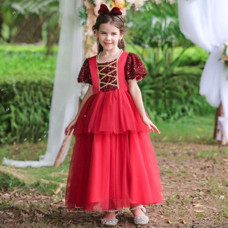 Платье принцессы для девочек, пышная сетчатая юбка, вечернее платье, длинное платье
