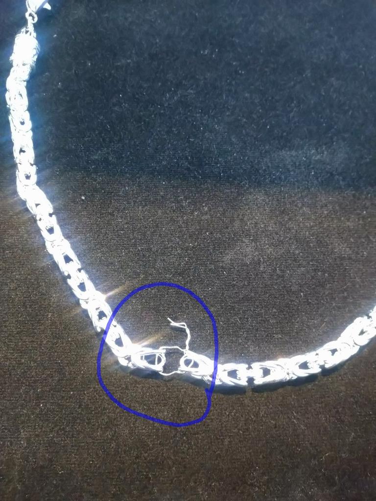 Цепочка очень красивой вязки, крупная, но пришла с явно выраженным браком. Где то посередине была разорвана и скреплена обычной проволокой. Я обалдела от такой наглости продавца. Пришлось относить в ювелирную мастерскую и там исправлять. Дополнительные расходы и неприятный осадок от того, что так тебя дурят!