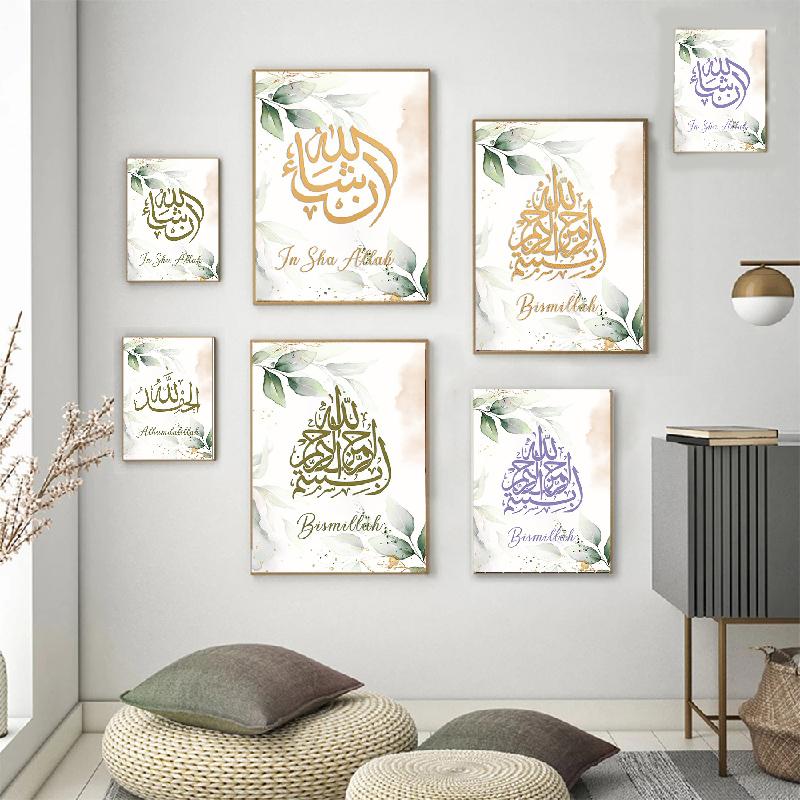 Исламская мода Мраморный холст Арабская каллиграфия Рамадан Картина Плакат Печать Настенные художественные фотографии Мусульманский Ид Украшение дома