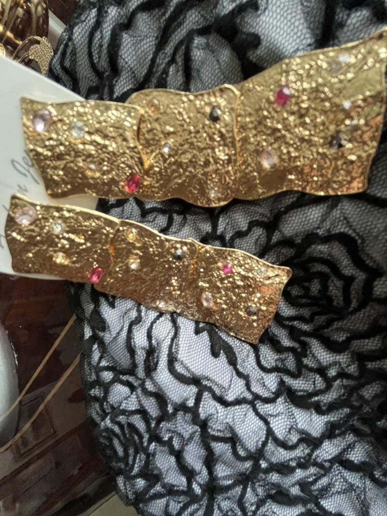 Камушки не в «лапках», а на клей посажены, но все на месте! Серьги очень эффектные, большие Очень удобный зажим на гвоздике, чтобы не «переваливались» от тяжести на ушах, все предусмотрено! К покупке советую!