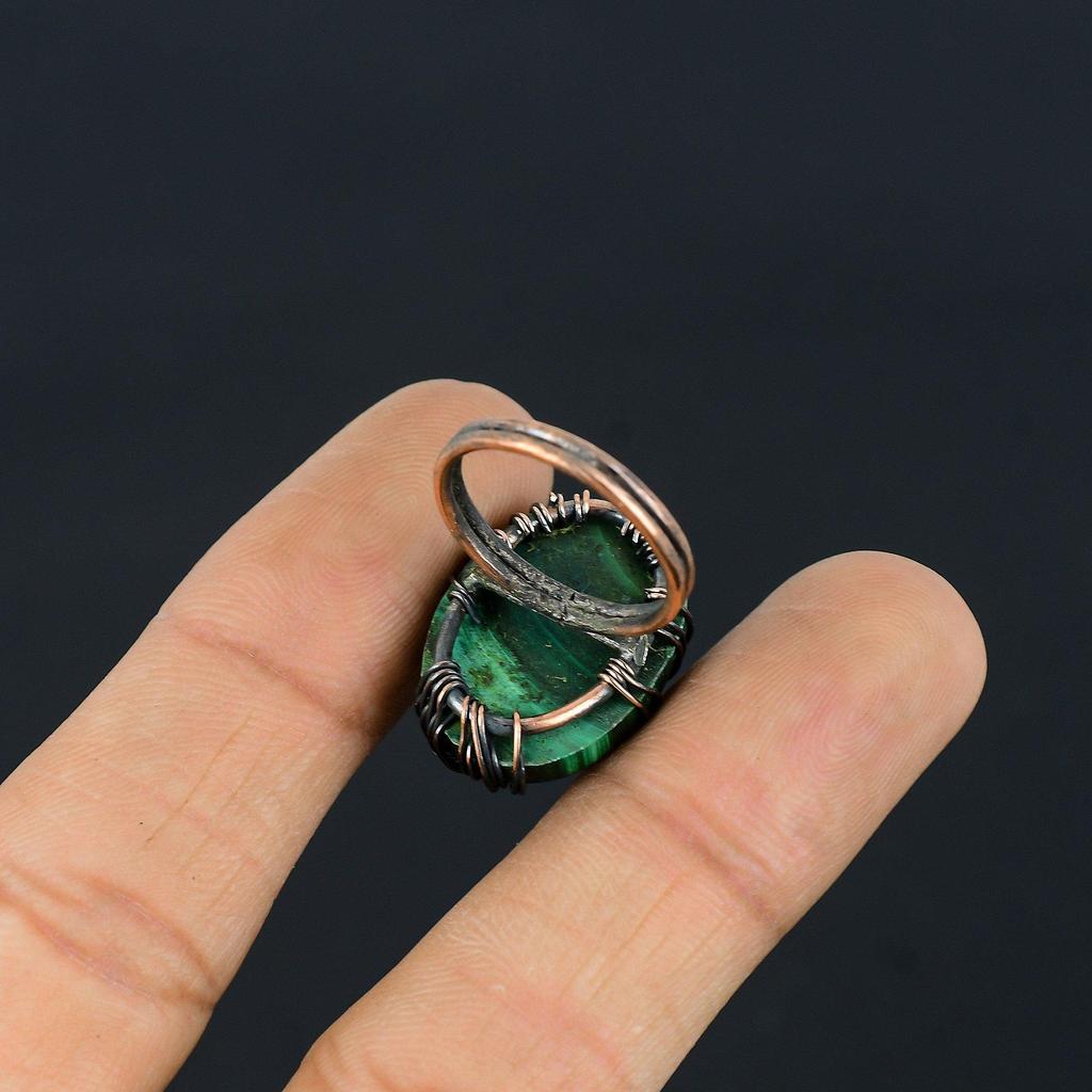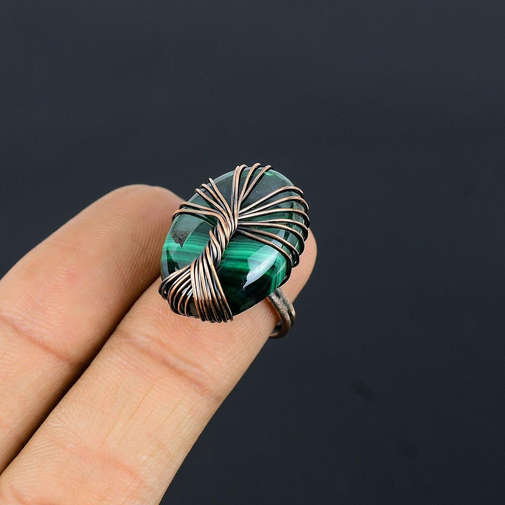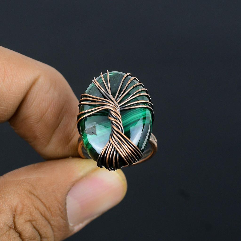 Древо Жизни Малахит Драгоценный Камень Медная Проволока Обернутое Ювелирное Кольцо Ручной Работы Для Женщин Все Размеры